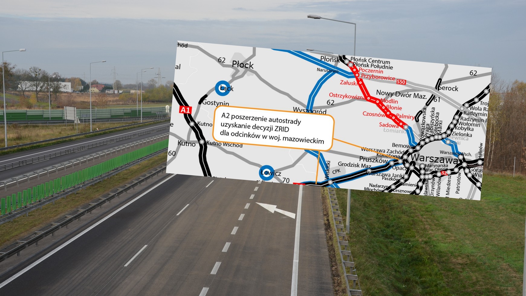 Teraz, po ponad pięciu miesiącach od złożenia wniosków, Wojewoda Mazowiecki wydał decyzje o zezwoleniu na realizację inwestycji drogowej (ZRID) dla dwóch odcinków, tj. fragmentu zaczynającego się na granicy województw łódzkiego oraz mazowieckiego i kończącego się ok. 3 km przed węzłem Grodzisk Mazowiecki, a także dla odcinka prowadzącego dalej w stronę Warszawy, kończącego się na węźle Konotopa.