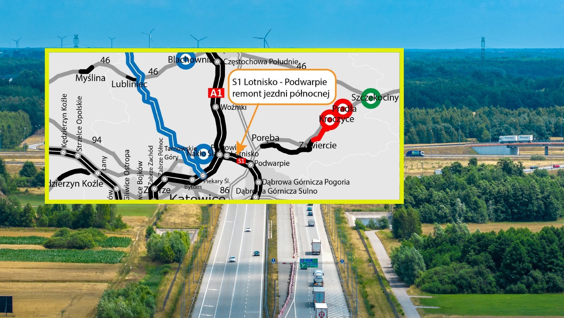 Ruszył kompleksowy remont na blisko 13-kilometrowym odcinku drogi ekspresowej S1. Prace obejmą wymianę nawierzchni jezdni w kierunku lotniska w Pyrzowicach, oddanej do użytku w 2006 r., a także obu jezdni w rejonie węzła Podwarpie. Organizacja ruchu na tym ważnym odcinku zostanie czasowo zmieniona, co wymaga od kierowców szczególnej uwagi na tymczasowe oznakowanie i objazdy.
