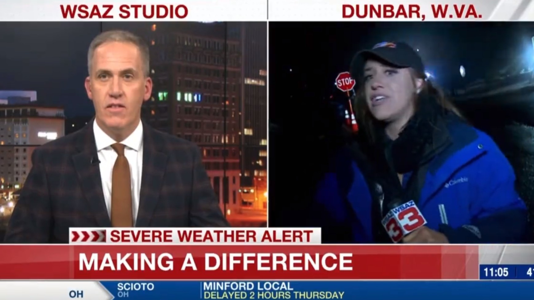 Reporterka amerykańskiej stacji telewizyjnej WSAZ może mówić o dużym szczęściu. Prezenter połączył się z Tori Yorgey przebywającą w mieście Dunbar w Wirginii Zachodniej. Dziennikarka miała opowiedzieć o pękniętym wodociągu, który uległ uszkodzeniu w wyniku trudnych warunków atmosferycznych.