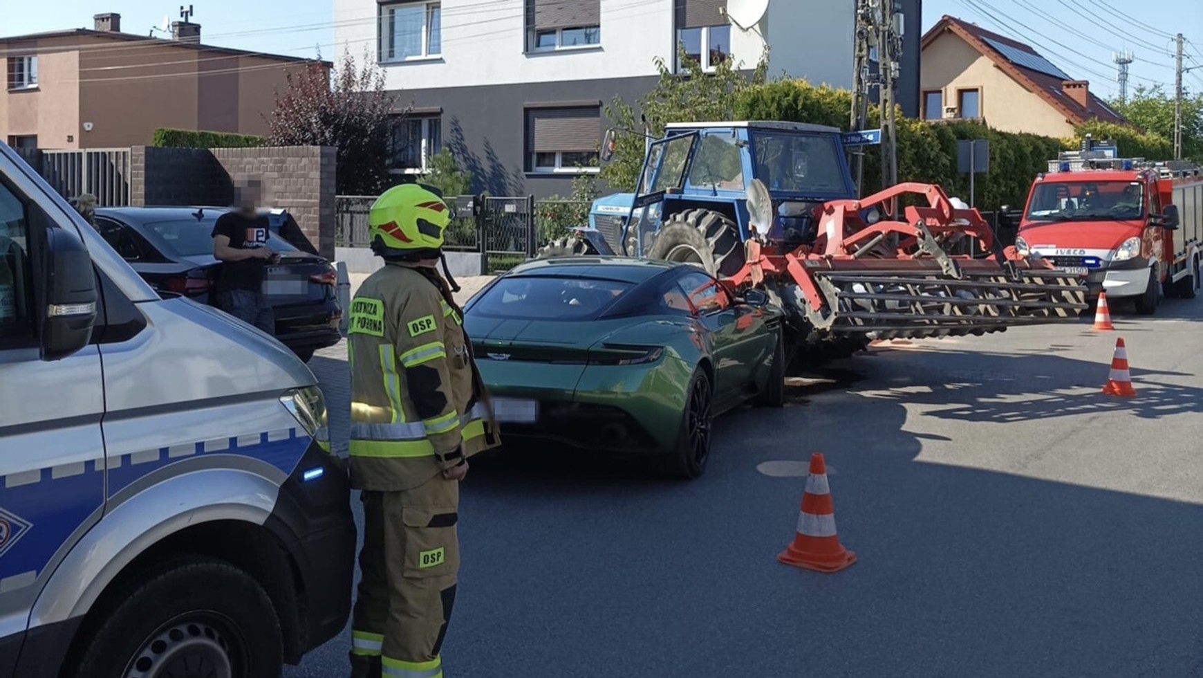 Na miejsce zostały wezwane służby, ale nikomu na szczęście nic się nie stało. Policja litości dla obu kierowców mieć nie mogła. Kierujący Astonem Martinem został ukarany za wyprzedzanie w rejonie skrzyżowania, a traktorzysta za niezachowanie ostrożności podczas skrętu.