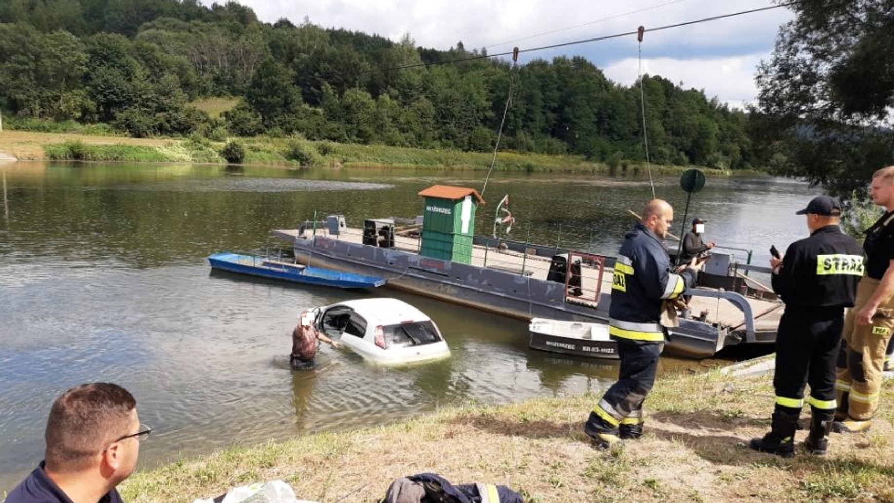 Na miejsce wezwano załogę karetki pogotowia ratunkowego oraz niezwłocznie zostali skierowani policjanci. Poszkodowana została jedna osoba. Obrażenia nie były poważne, mężczyzna nie wymagał hospitalizacji. Z uwagi na niski stan wody – prom tego dnia był zamknięty. Samochód znajdował się w rzece na głębokości około 1 m.