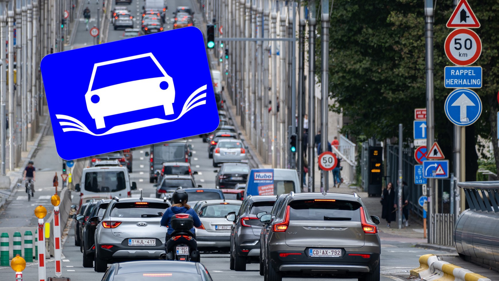 Na drogach Belgii (tu od razu mamy wyjaśnienie, dlaczego część polskich kierowców nie rozpoznaje tego znaku — mogli nie być przecież w Belgii i nie widzieli go nigdy na żywo) można spotkać niecodzienny znak drogowy — niebieską tablicę z białym samochodem wyposażonym w skrzydła. Choć na pierwszy rzut oka może wydawać się żartem albo np. reklamą linii lotniczych (bo takie skojarzenia również mogą się pojawić w związku z tym znakiem) — bo nie wszystkim do końca kojarzyć się może jednoznacznie ze znakiem drogowym — w rzeczywistości niesie ze sobą ważne ostrzeżenie dla kierowców jadących trasą, przy której został ustawiony.