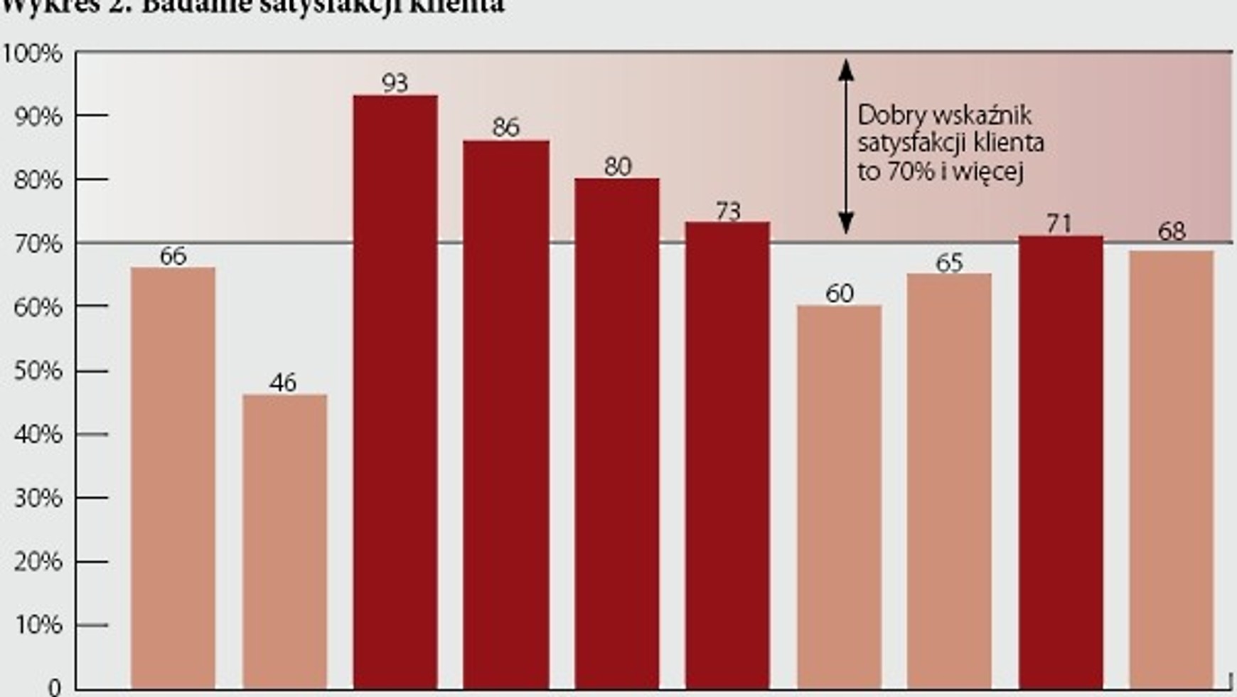 Listę TOP 10 stworzyły firmy, które w badaniach bezpośrednich otrzymały najwyższą liczbę pojedynczych punktów w poszczególnych kategoriach: obsługa klienta, znajomość produktu przez doradców firm leasingowych, otwartość i pomoc doradców, wymagane dokumenty, wskaźnik satysfakcji klientów firm leasingowych porównany indywidualnie i w stosunku do całego sektora. Wyniki końcowe określające wskaźnik CSI znajdują się na wykresie nr 2 i są wynikami procentowymi.
