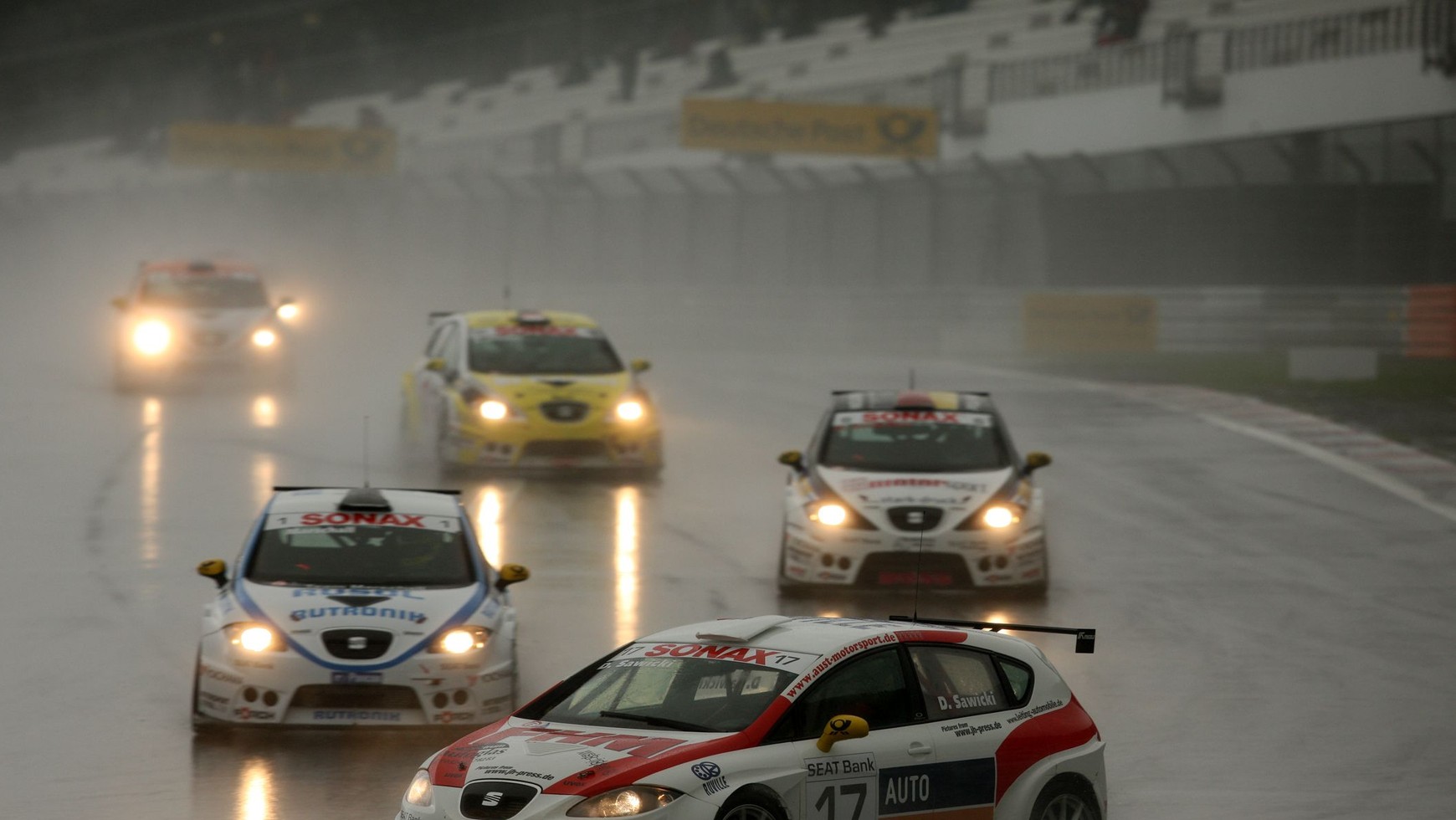 Niedzielne zmagania na torze Nürburgring w SEAT Leon Supercopa odbywały się w dziwacznych warunkach. Deszcz spowodował istny chaos wśród organizatorów. Zaplanowany na godzinę 8:50 wyścig został przełożony, ponieważ nad położonym w niemieckich górach Eifel obiektem panowała fatalna pogoda, a gęsta mgła znacznie ograniczała widoczność. Na start czekano prawie 10 godzin i gdy o 18:00 tor był już suchy i wszystko zapowiadało się dobrze, nagle zerwała się ulewa. W jednej chwili Nürburgring zapadł w mroku a po asfalcie płynęły strumienie wody. Gdyby tego było mało, w kilku samochodach, w tym u Damiana Sawickiego, zaparowały szyby.