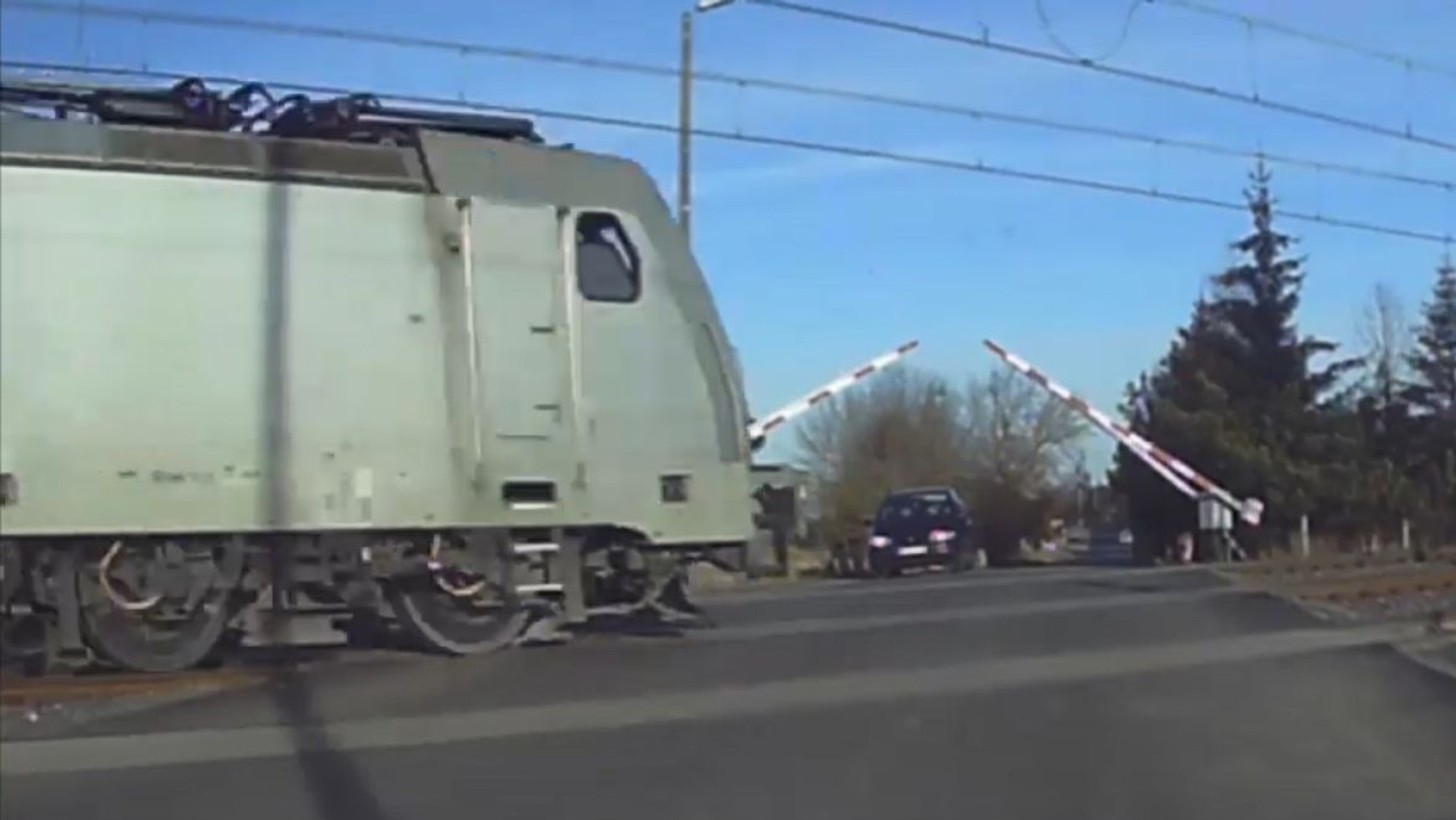 Kierowca zatrzymał się dopiero w połowie przejazdu, kiedy zobaczył, że samochód stojący po drugiej stronie przejazdu ostrzega go mrugając światłami. Na filmie widać, jak auto z kamerą cofa wycofuje się z przejazdy, a po kilku sekundach przed jego maską przejeżdża skład towarowy. Od tragedii kierowcę dzieliło kilka sekund.
