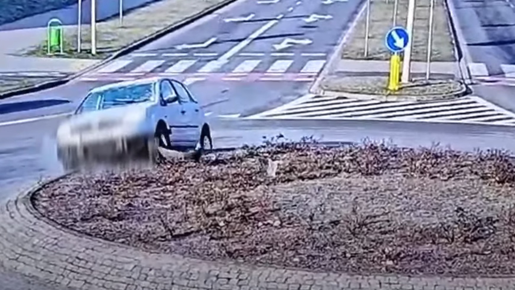 Jeden z kierujących widząc tę niebezpieczną sytuację, zwrócił uwagę kierowcy, że stwarza zagrożenie dla innych uczestników ruchu, uświadamiając go, że musi oczyścić szybę z lodu. To też nie pomogło. Kierowca forda ruszył przed siebie. Dalej nie widząc drogi, nie zastosował się do zasad obowiązujących na skrzyżowaniu z ruchem okrężnym i próbował przejechać przez rondo na wprost.