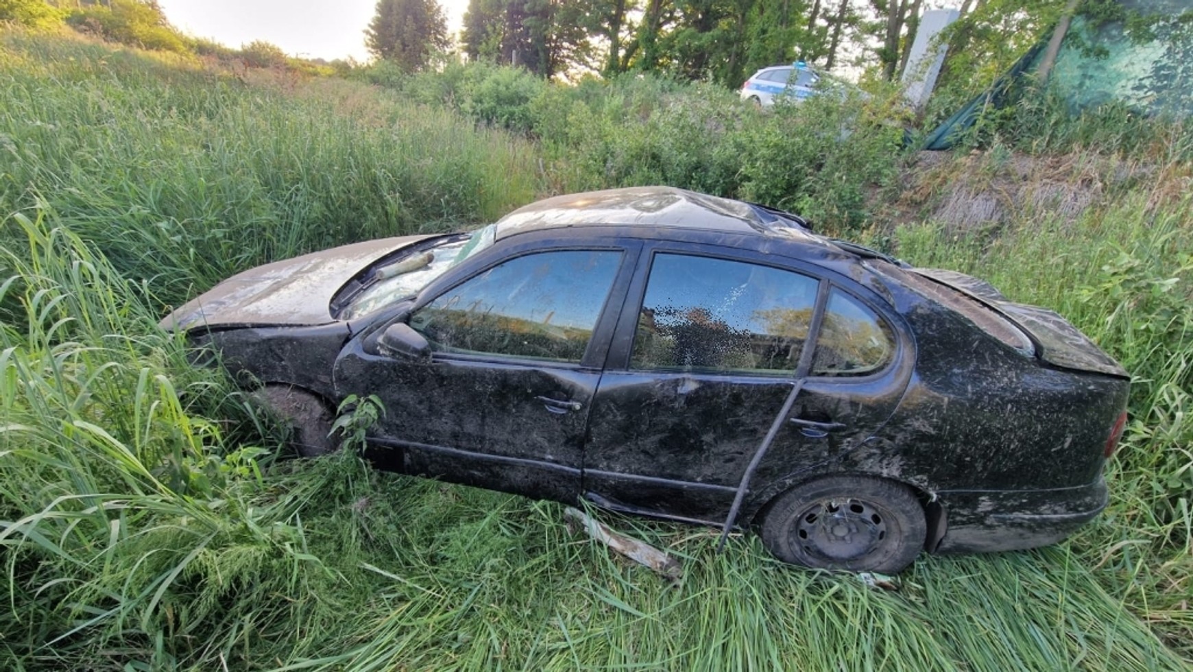 Policjantom wyjaśnił, że to on kierował pojazdem. Jak tłumaczył, sięgał po telefon, przez co stracił panowanie nad autem, uderzył w ogrodzenie i spadł do wyschniętego stawu.