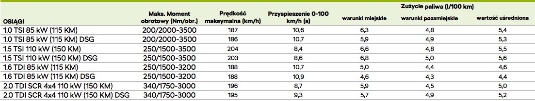 - Skoda Karoq jest oferowana z silnikami o mocy 115 i 150 KM