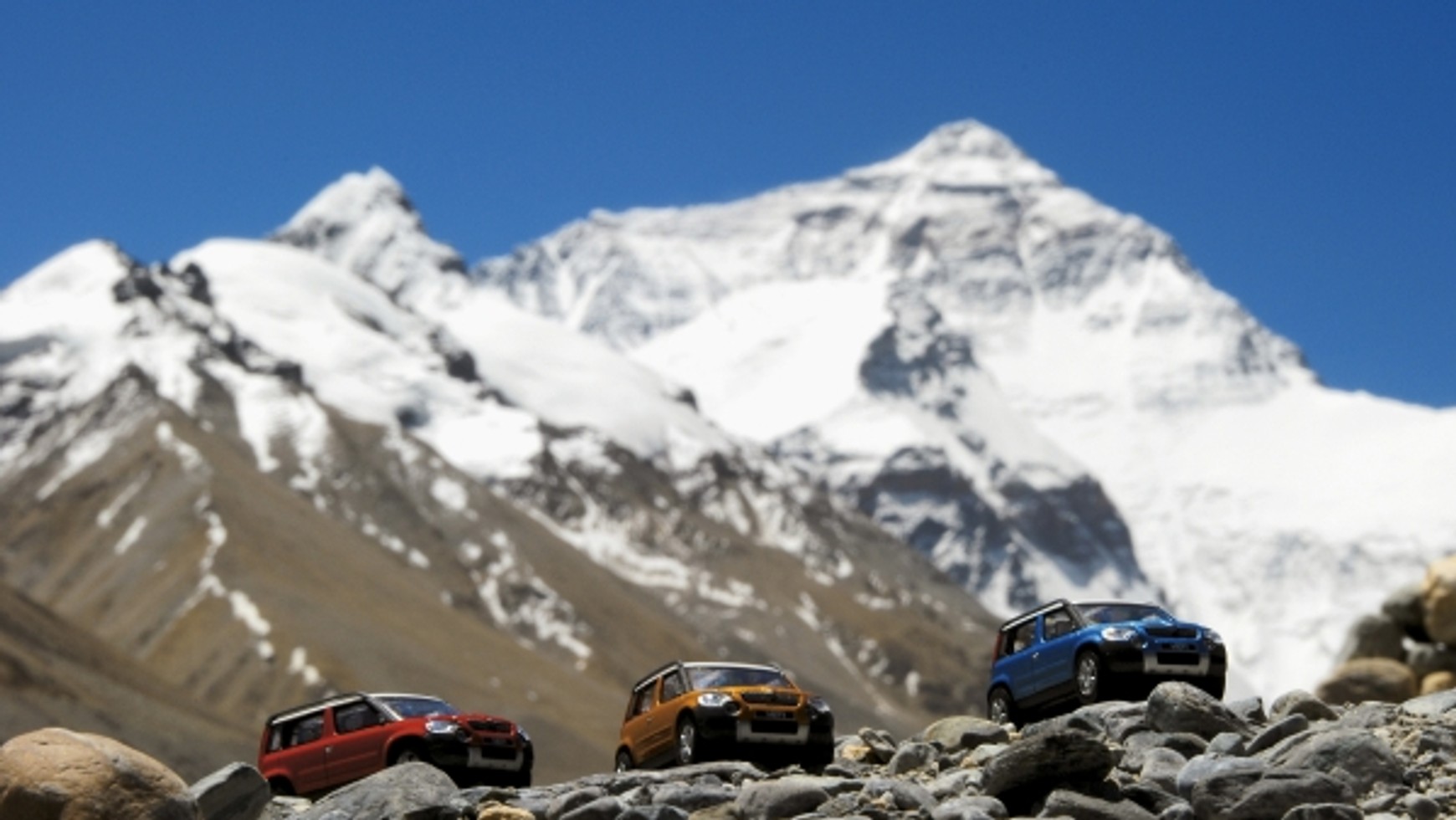 Na razie w pobliże Mount Everest zawędrował Yeti jedynie w formie modeli w skali 1:43. Produkcja modelu Yeti znajduje się obecnie w fazie przygotowawczej, jednak miłośnicy mocnych wrażeń skracają czas oczekiwania na przyszłoroczny debiut SUV-a Škody. Skoro mityczny Yeti mieszka w Himalajach, nic dziwnego, że alpinista Jiří Mulač powędrował w te okolice z koncepcyjnymi modelami tego samochodu. Przygotował tam sesję zdjęciową Škody Yeti z monumentalnym Mount Everestem w tle, budując klimat wielkiej przygody wiążącej się z tym modelem.