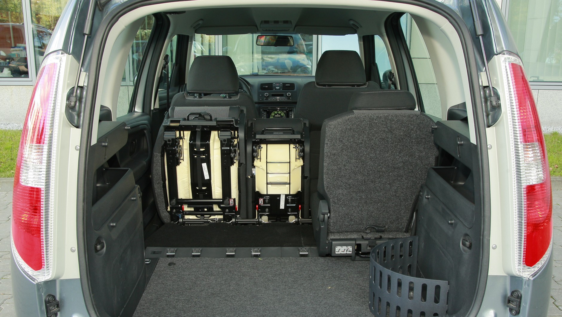 Skoda Roomster jest kojarzona przede wszystkim z odważnie stylizowanym nadwoziem. Samochód biorący udział w naszym teście długodystansowym okazał się także bardzo praktyczny… Nawet suche dane techniczne robią wrażenie. Karoseria Roomstera ma tylko 4,2 metra długości. Nie przeszkodziło to w zaprojektowaniu bagażnika o pojemności 477 litrów. Kto potrzebuje więcej, może przesunąć indywidualne tylne fotele i powiększyć bagażnik do 530 litrów. Po złożeniu siedzeń można uzyskać blisko 1800 litrów. Utrzymanie ładu w przestrzeni bagażowej Roomstera ułatwiają opcjonalne przegródki i siatki. Nasz egzemplarz nie został wyposażony w koło zapasowe, co oznacza, że pod podłogą bagażnika znalazła się wnęka, do której bez problemu można schować np. 5-litrową butlę płynu do spryskiwaczy. Elementów zwiększających praktyczność nie zabrakło także w przedziale pasażerskim. Kieszenie przednich drzwi są pojemne i mają wyprofilowane mocowanie, które może utrzymać nawet 1,5-litrową butelkę. Znajdujący się przed pasażerem schowek został wyposażony w funkcję chłodzenia, która umożliwia chłodzenie napojów w upalne dni. Kolejne schowki odkrywamy pod przednimi siedzeniami. W ich oparciach nie zabrakło także kieszeni na mapy lub gazety. Testujący zwrócili uwagę na korzyści płynące z zastosowania trzech oddzielnych foteli z tyłu. Siedzenia można nie tylko przesuwać. Komfort na dalekich trasach zwiększa możliwość regulacji kąta pochylenia oparcia. Jeżeli Roomsterem podróżują cztery osoby, środkowe siedzenie można złożyć, zamieniając je w podłokietnik z dwoma uchwytami na napoje. Fotel można także zostawić w garażu, a powstałą przestrzeń wykorzystać i przestawić ku środkowi skrajne fotele. Wówczas pasażerowie będą mieli więcej przestrzeni na wysokości tułowia. Na uwagę zasługuje fakt, że w tylnej części nie brakuje przestrzeni nawet po maksymalnym cofnięciu przednich foteli. To zasługa ponadprzeciętnego rozstawu osi. W Roomsterze wynosi on 2617 mm. Dla porównania warto dodać, że osie Octavii, która jest o 27 centymetrów dłuższa od Roomstera dzieli 2575 mm.