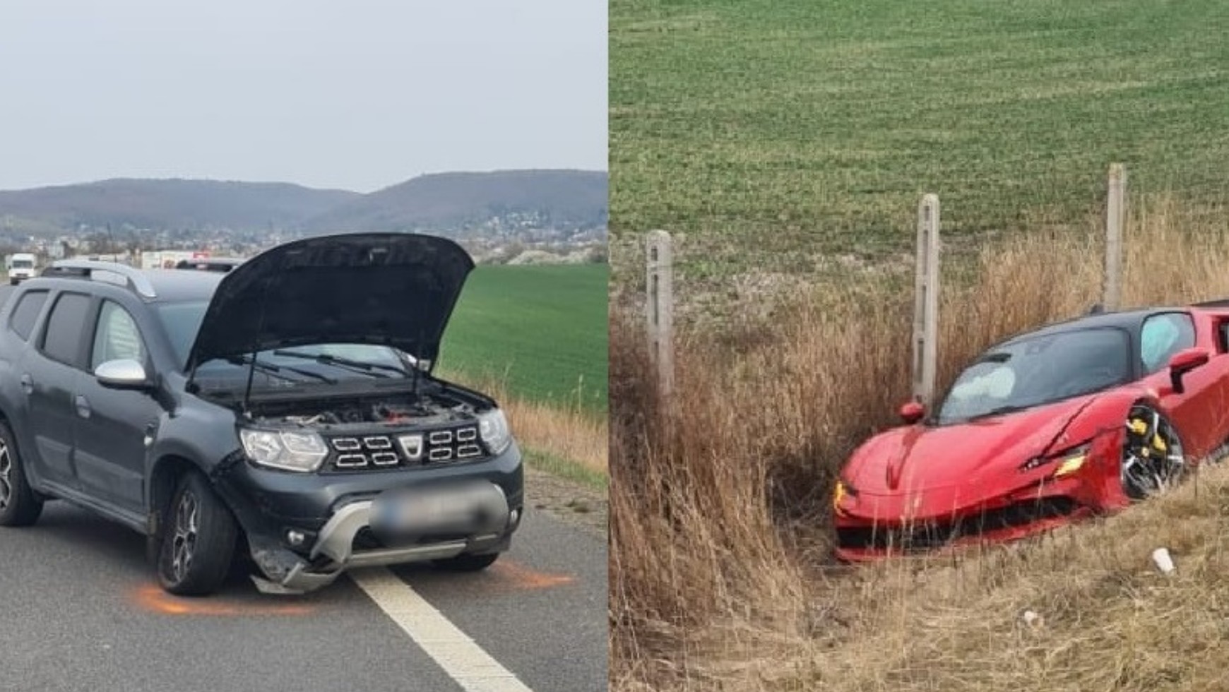 Do wypadku doszło we wtorek 29 marca na autostradzie D4 pod Bratysławą. W wyniku kolizji ucierpiały Dacia Duster i włoski sportowy samochód. W związku z siłą uderzenia, Ferrari znalazło się poza drogą.