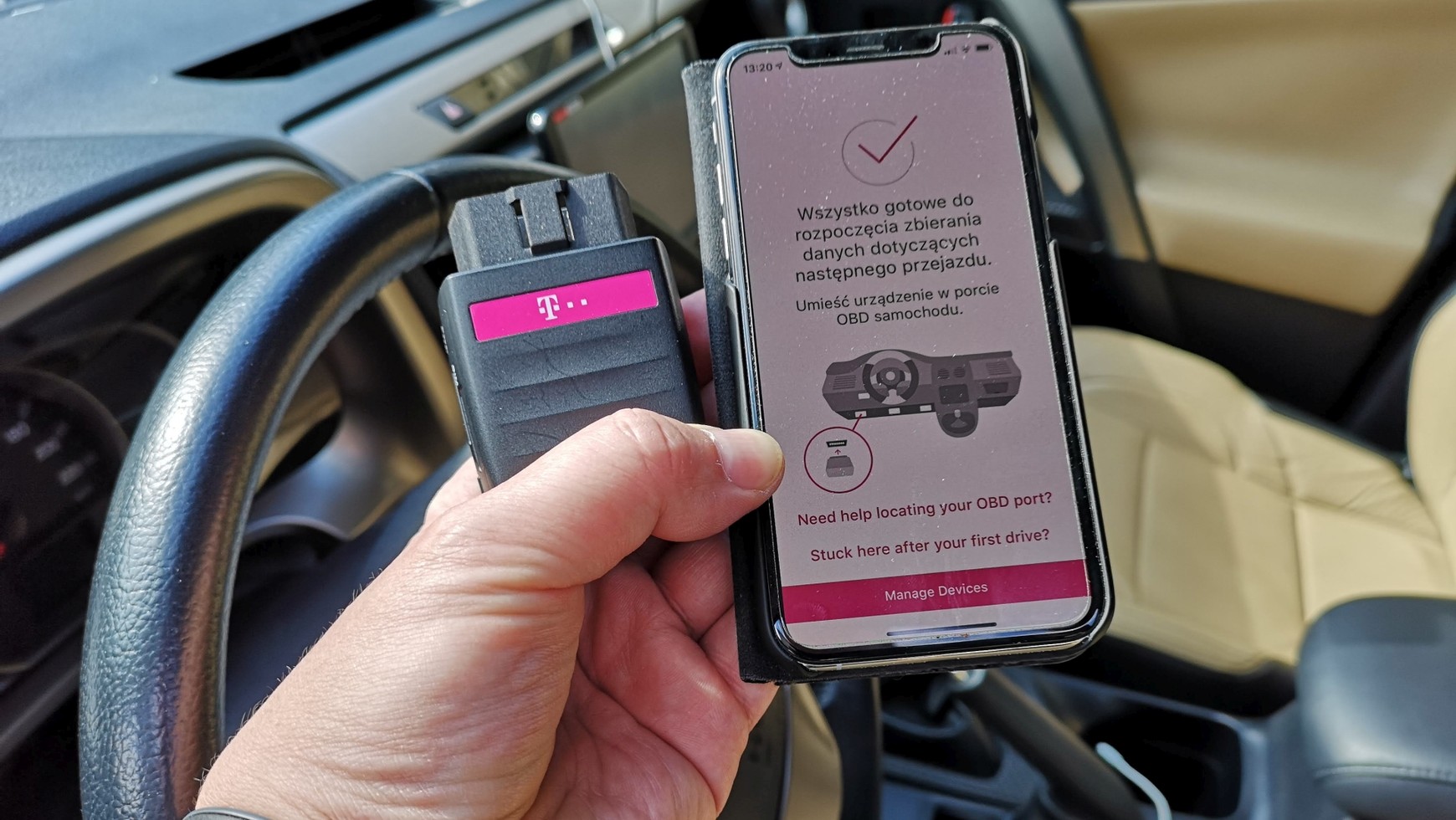 Równie łatwo i wygodnie prezentuje się samo podłączenie i aktywacja usługi. W końcu to żaden problem, by pobrać bezpłatną aplikację na telefon z Android czy iOS, dokonać rejestracji i sparować moduł z telefonem. Zresztą bez trudu samodzielnie podłączymy moduł do gniazda OBD-II w samochodzie. W razie potrzeby można sięgnąć po praktyczny przewodnik dostępny na stronie T-Mobile, gdzie otrzymamy informacje o lokalizacji portu w naszym aucie. T-Mobile przekonuje, że całość zajmuje niecały kwadrans. Nam udało się w niecałe 10 minut.