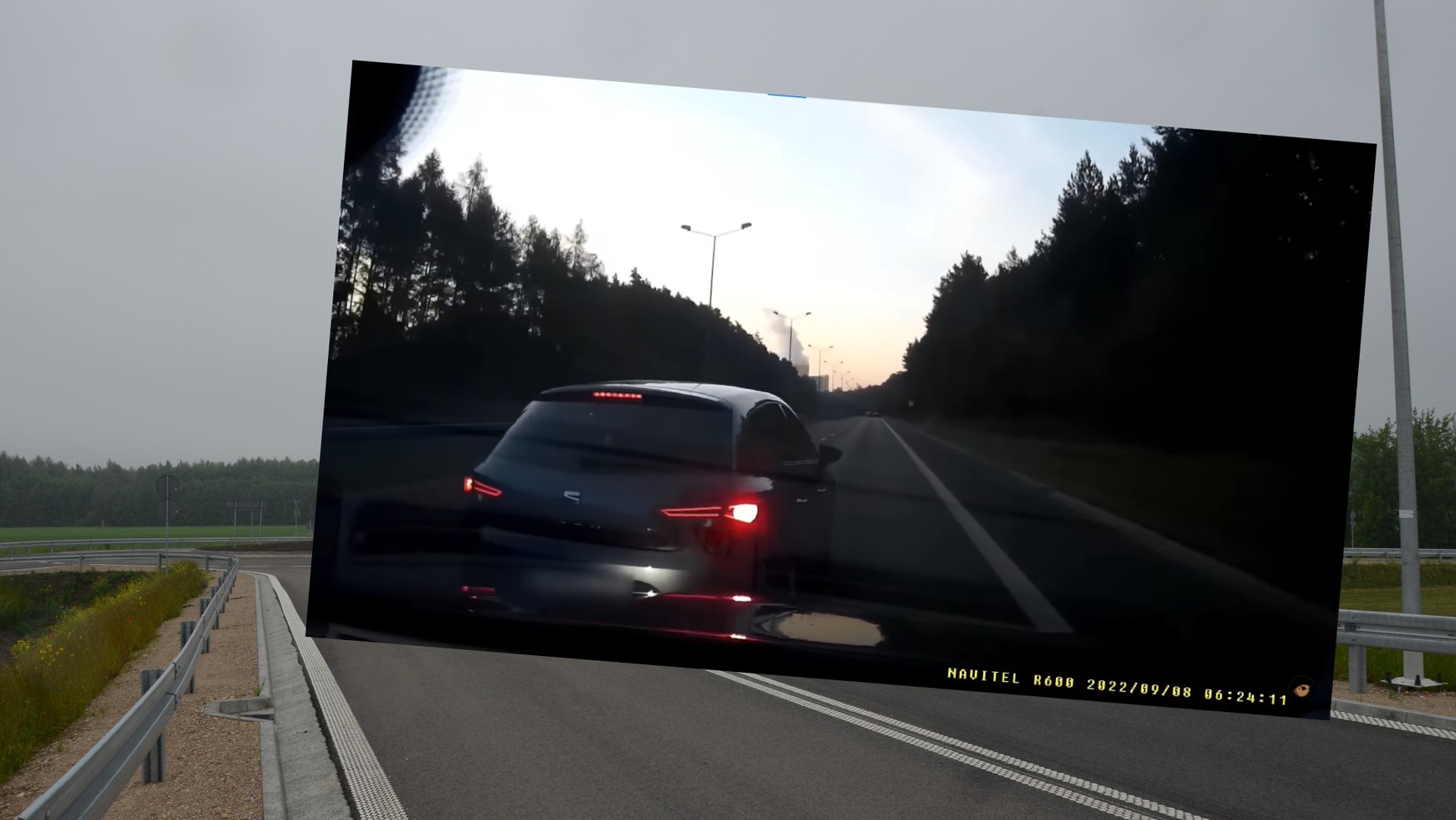 To jednak nie koniec tej historii, bo po jakimś czasie wraca trąbiący kierowca i chce się odegrać na nagrywającym. Wyprzedza go i zaczyna hamować. Nie wyczuł on jednak odległości i doszło do uderzenia w tył Seata. Cwaniak nie był tak cwany, jak mu się wydawało.