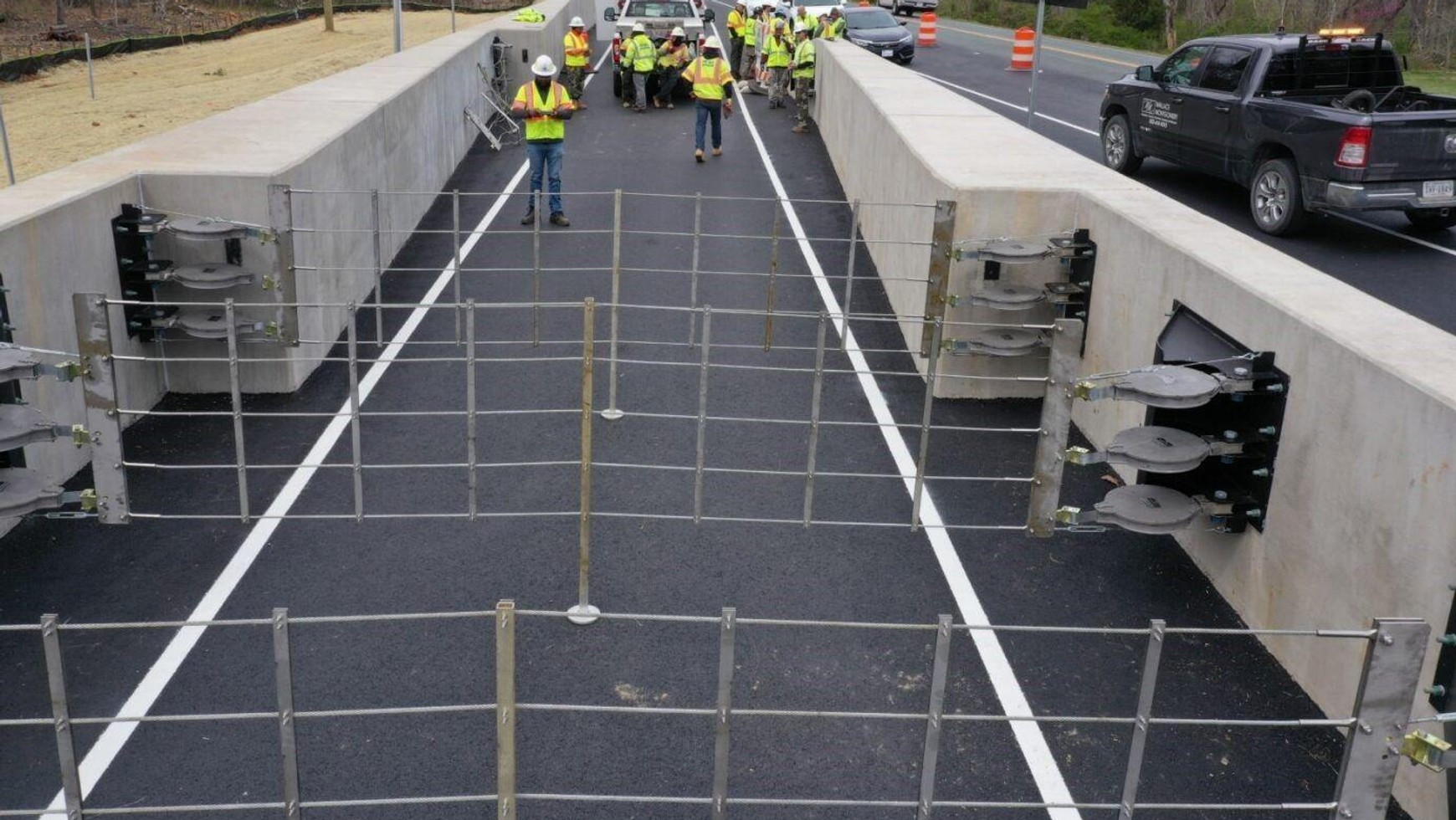 Nowatorskie rozwiązanie można spotkać już w kilku stanach USA. Teraz pojawiła się na tej liście Wirginia, a konkretnie biegnąca przez nią kręta droga nr 250. Ze względu na ograniczoną przestrzeń, zamiast tradycyjnej rampy, postanowiono przy niej betonowy korytarz, w którym została rozpięta stalowa uprzęż składająca się z 10 przegród.