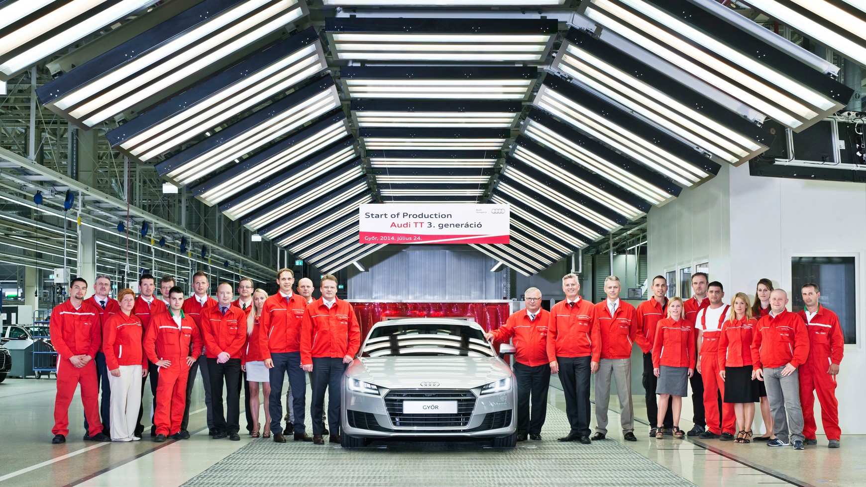 Po Audi A3 Limousine, S3 Limousine i nowym A3 Cabriolet, których produkcja na Węgrzech rozpoczęła się już w ubiegłym roku, z taśmy produkcyjnej zakładów w Győr będzie teraz zjeżdżać także nowe Audi TT. Wszystkie te modele w całości wytwarzane są w węgierskiej fabryce czterech pierścieni.