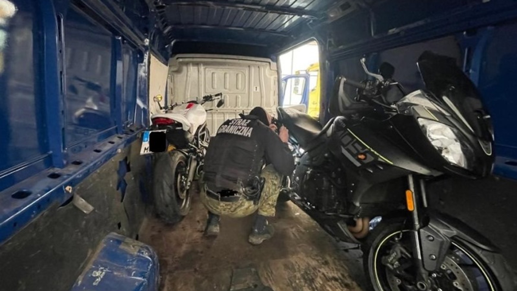 Na "pace" dostawczaka funkcjonariusze znaleźli dwa motocykle na niemieckich numerach rejestracyjnych. Były to Triumph Tiger Sport oraz Ducati Monster 797 o łącznej wartości 90 tys. zł. Ustalono, że zostały one skradzione zaledwie kilka godzin wcześniej w Berlinie. Pojazd wraz z jednośladami został zabezpieczony.