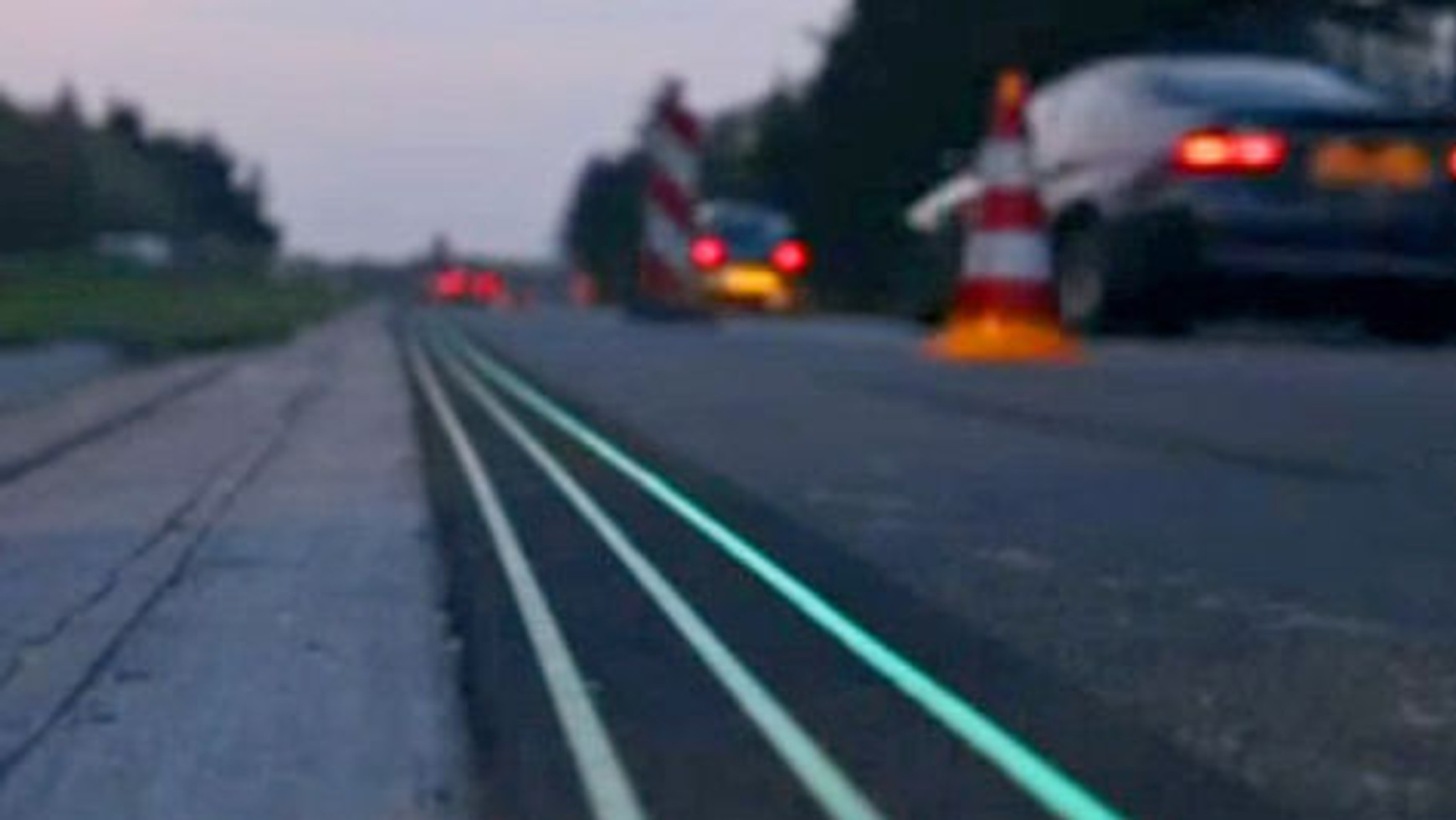 W Niderlandach wiele uwagi wzbudziło doświadczenie z świecącymi oznaczeniami drogi. Na 500-metrowym odcinku drogi krajowej N329 w pobliżu miasta Oss, namalowano pasy jezdni specjalną farba fosforyzującą, która w ciągu dnia „ładuje” się promieniami UV by w nocy oddawać zmagazynowaną energię w postaci zielonego światła. Idea działania jest taka sama jak np. w zegarkach sportowych czy zabawkach, a od 10 kwietnia – stosowana także w ruchu drogowym.