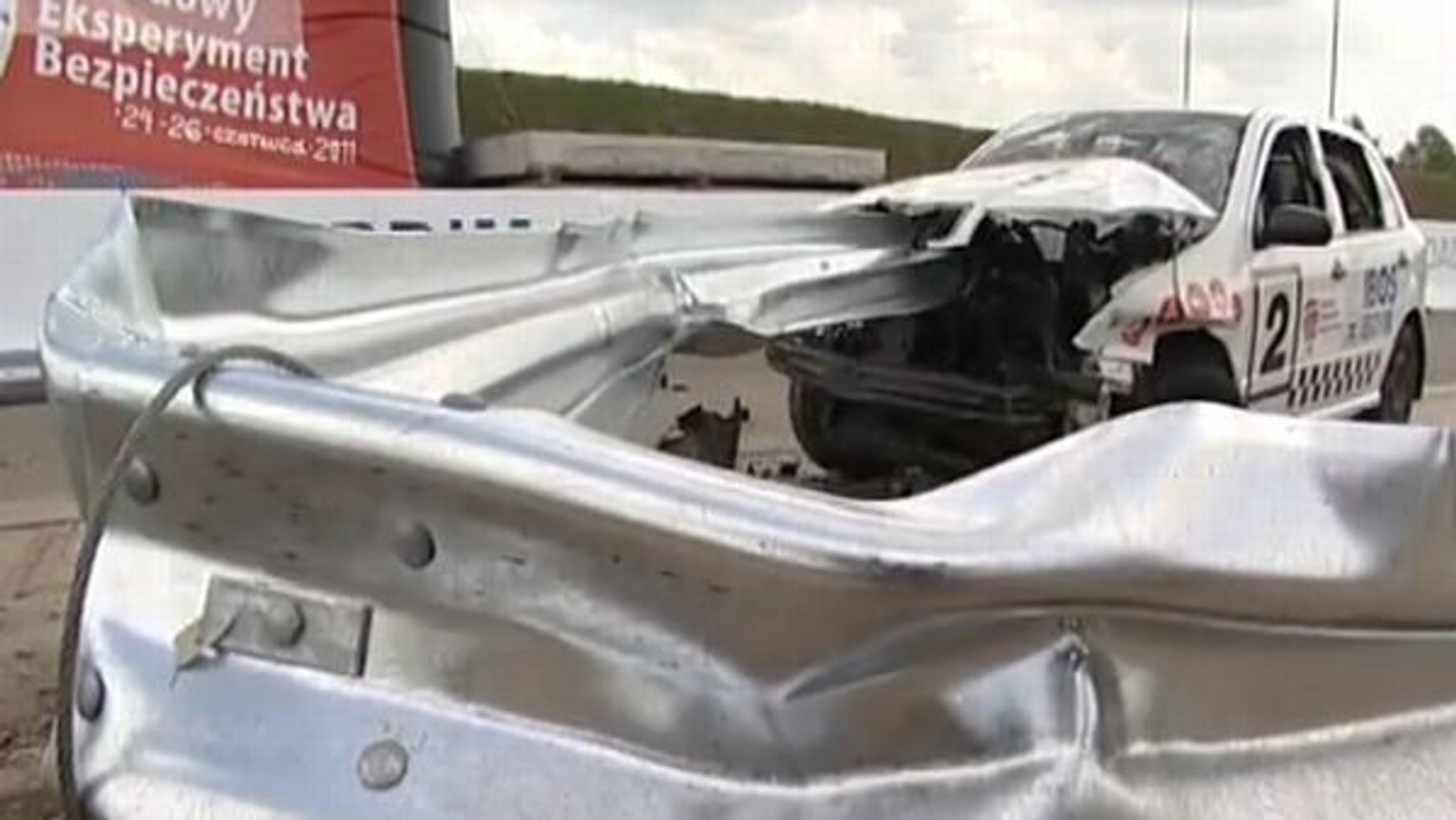 Efekt? Kierowca praktycznie nie ma żadnych szans na przeżycie. - Niedokręcona bariera wbiła się w maskę samochodu, przeszyła na wylot jego wnętrze i wyszła lewym przednim oknem. Gdyby w aucie był kierowca, jego ciało zostałoby zmiażdżone - tłumaczy Krzysztof Różewicz. Siła uderzenia była tak duża, że auto zagięło cztery metry bariery.