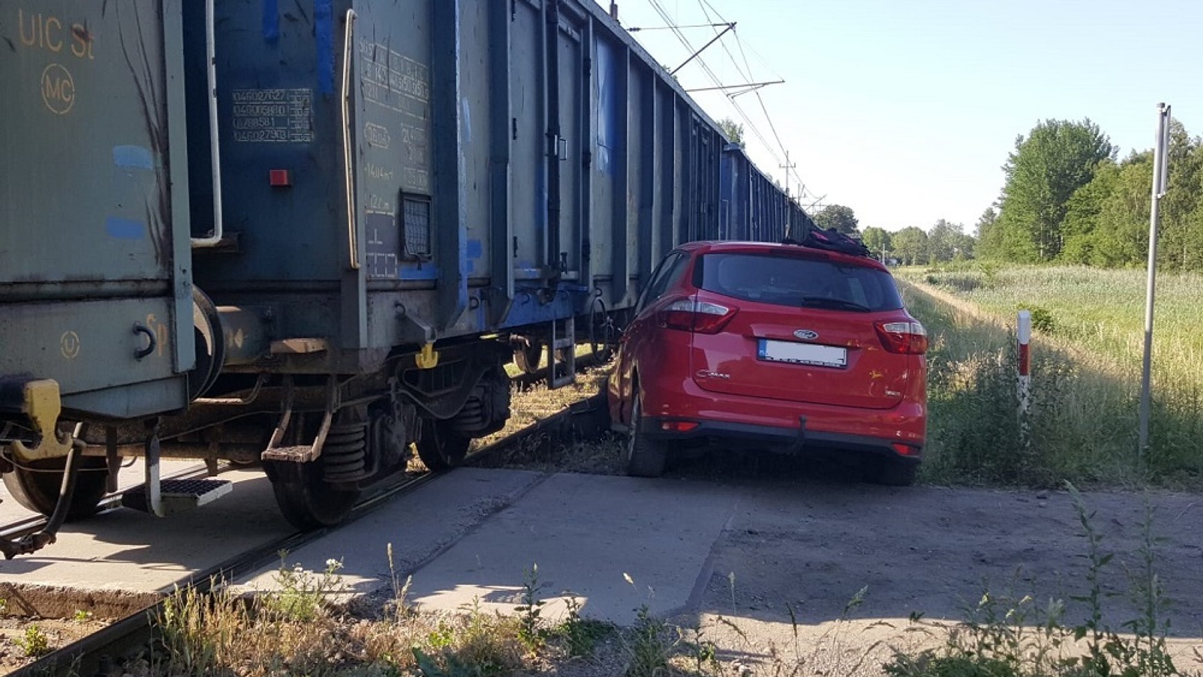 Policjanci ze Szczecinka przekonują, że kierowca osobowego Forda może mówić o olbrzymim szczęściu. 27 czerwca 2022 r. na niestrzeżonym przejeździe kolejowym na ul. Łukasiewicza w Szczecinku zignorował znak STOP i uderzył w przejeżdżający pociąg towarowy.