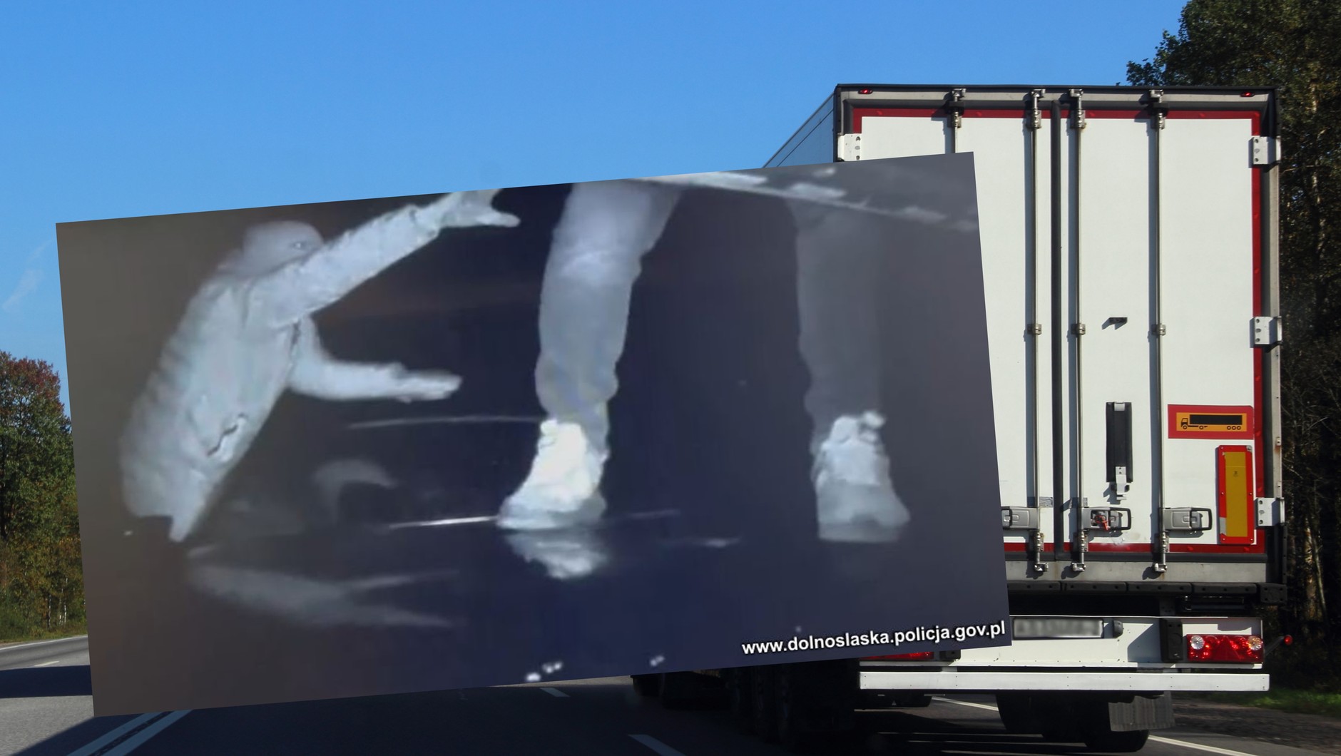 Nietypowy proceder został zarejestrowany przez kamerę na jednej z naczep. Nagranie pokazuje, jak jeden z mężczyzn wydostaje się przez otwarte okno BMW i wchodzi na pokrywę silnika. Gdy auto zbliża się do ciężarówki, sprawca zrywa zabezpieczenie plandeki i dostaje się do wnętrza naczepy. Wszystko dzieje się przy asekuracji drugiego mężczyzny, poruszającego się tym samym pojazdem.