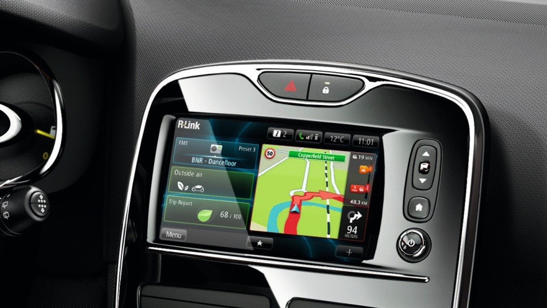 Nad bardziej zaawansowane rozwiązaniami pracuje koncern Renault. Francuski producent zapowiada, że już wkrótce we wszystkich modelach standardowo montowane będą 7-calowe ekrany dotykowe, dzięki którym funkcje dość powszechnie już spotykane w samochodach, jak nawigacja zintegrowana z systemem audio, wzbogacone zostaną o funkcjonalności zarezerwowane do tej pory dla tabletów. Renault pokazało także zapowiedź marketu aplikacji, które dostępne będą do pobrania i używania w samochodzie.