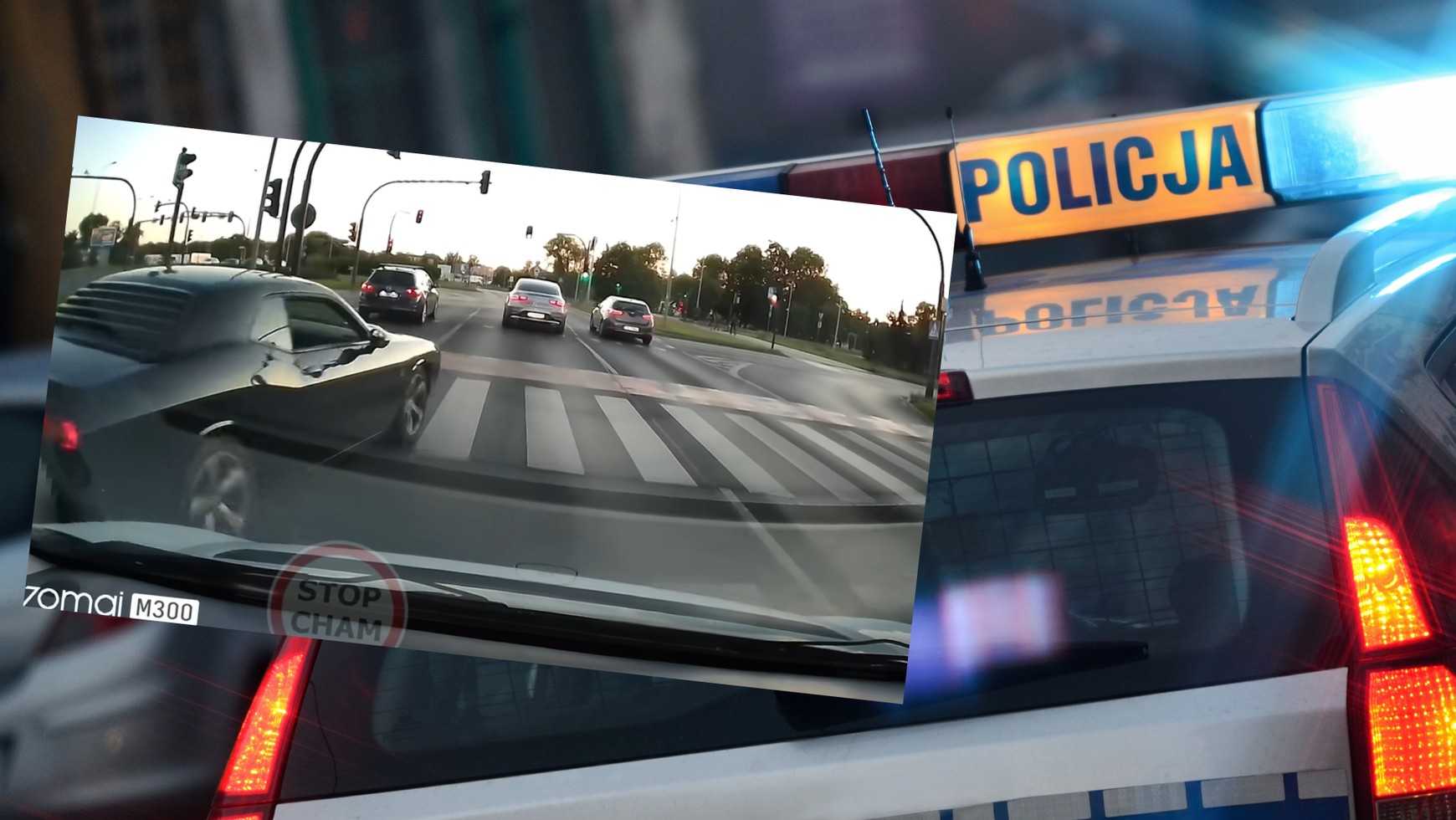 Z dalszego nagrania można wnioskować, że chyba chciał zrobić na złość. Kiedy zapaliło się zielone światło, ponownie wjechał przed samochód z wideorejestratorem oraz gwałtownie zahamował tuż za przejściem dla pieszych. Autor nagrania najechał delikatnie na tył Challengera i teoretycznie stał się sprawcą kolizji.