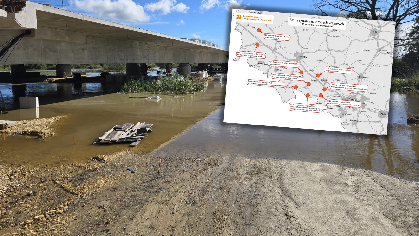 "Zablokowanych jest odcinków sześć dróg krajowych w zarządzie GDDKiA i zamknięte są 2 mosty. Pozostałe utrudnienia nie blokują ruchu, ale wymagają np. punktowego wprowadzenia ruchu wahadłowego czy ograniczenia prędkości" — informują w komunikacie drogowcy.