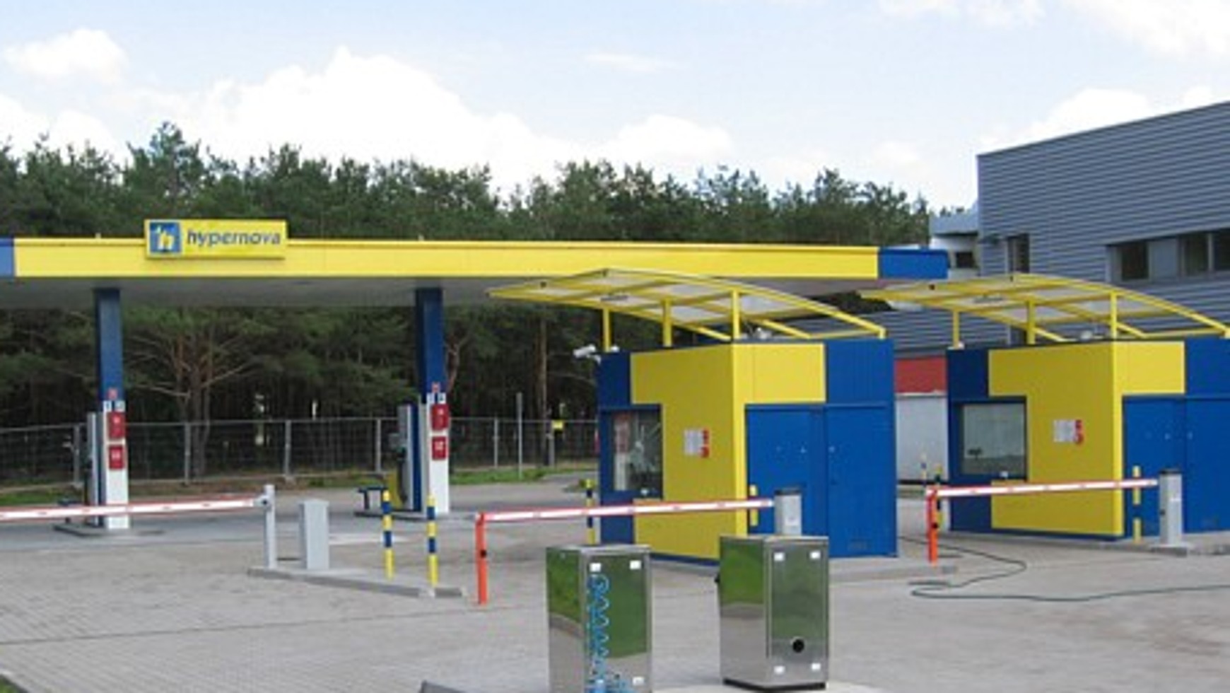 Samoobsługową stację benzynową w Bydgoszczy wyposażono w 3 dystrybutory.Na stacji pracuje sześcioosobowa załoga. W dwóch kasach Klienci mogą płacić gotówką, oraz kartami płatniczymi. Obiekt oferuje: benzynę bezołowiową 95, benzynę bezołowiową 98 oraz olej napędowy. Znalazło się na niej również stanowisko z odkurzaczem oraz kompresor.Wszyscy, którzy zatankują na nowej stacji, otrzymają specjalne zniżki na zakupy w supermarkecie - za paragon ze stacji na kwotę minimum 80 zł Klient otrzyma bon na 5 zł, za 160 zł - 10 zł, a klienci hipermarketu otrzymają rabaty na paliwo - jeśli na zakupy wydadzą minimum 80 zł - otrzymają upust w wysokości 5 groszy na 1 litrze, za 160 zł wydanych w hipermarkecie - 10 groszy upustu na każdym litrze paliwa.