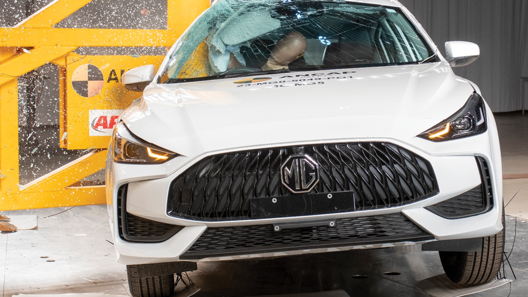 ANCAP podkreśla, że kierowca sedana MG narażony jest na duże ryzyko obrażeń klatki piersiowej (zła ochrona) i nóg (zła ochrona) podczas czołowego zderzenia, gdy auto uderza fragmentem pasa czołowego. Z kolei i kierowca (klatka piersiowa) i pasażer (nogi) są słabo chronieni przy uderzeniu czołowym pełną szerokością. Czujniki zanotowały zbyt mocne ugięcie klatki piersiowej i zbyt duże obciążenie pasów bezpieczeństwa, które przekraczały limit, w którym dochodzi do obrażeń.