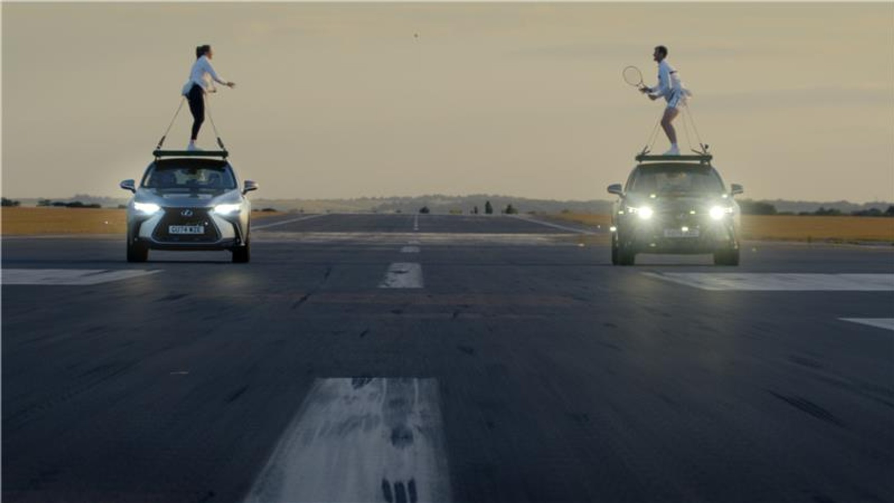 Dwa Lexusy NX zostały specjalnie przystosowane do tego wyzwania. Do relingów na dachach SUV-ów zamontowano solidne aluminiowe platformy, a tenisiści zostali zabezpieczeni specjalnymi linkami. Samochody prowadzili doświadczeni kaskaderzy, a próbę przeprowadzono na terenie lotniska w Duxford. Ponadto nad wszystkim czuwał ceniony specjalista od efektów specjalnych Marc Cass, który pracował przy serii filmów o przygodach Jamesa Bonda, Harry’ego Pottera oraz przy Gwiezdnych Wojnach.