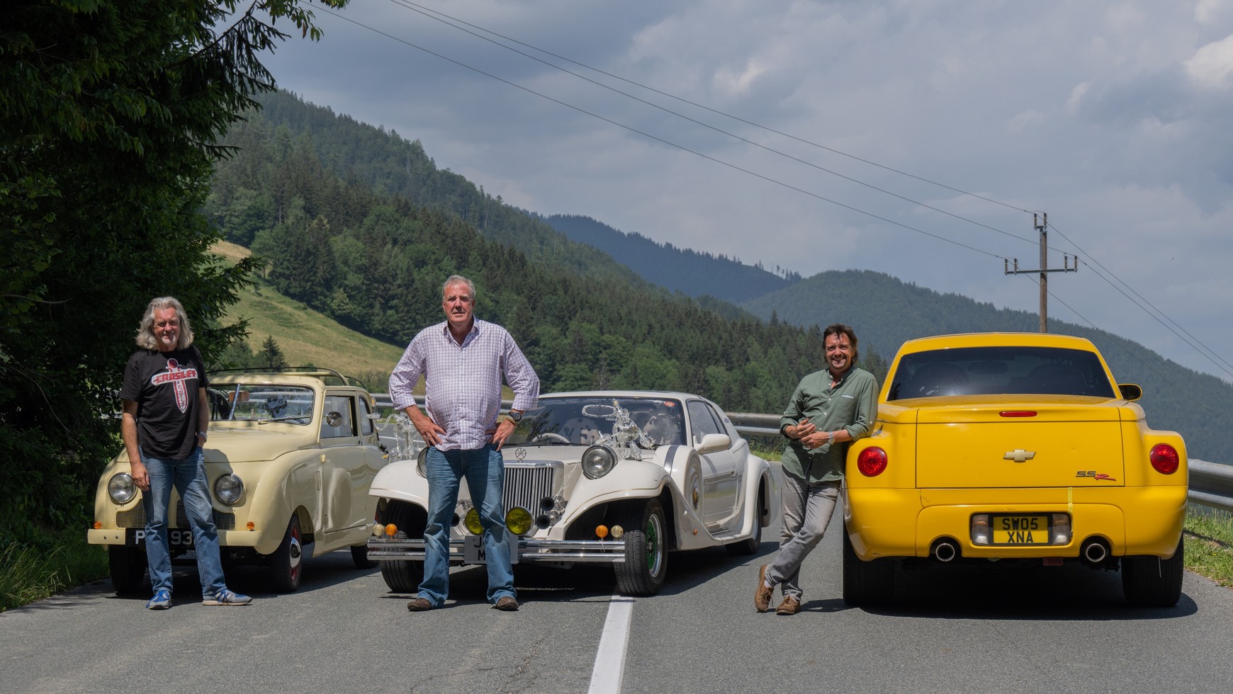 Już prawie rok temu, w czerwcu 2022 r., wybuchła sensacja: trio pojawiło się w Polsce kręcić kolejny odcinek The Grand Tour. Każdy z bohaterów miał mocno niecodzienny samochód. Jeremy Clarkson był widziany w retroaucie Mitsuoka Le-Seyde (1990-1993 i 2000-2006), Richard Hammond w pickupie cabrio Chevrolet SSR (2003-2006), a James May w miniaturowym Crosleyu z końca lat 40. XX w.