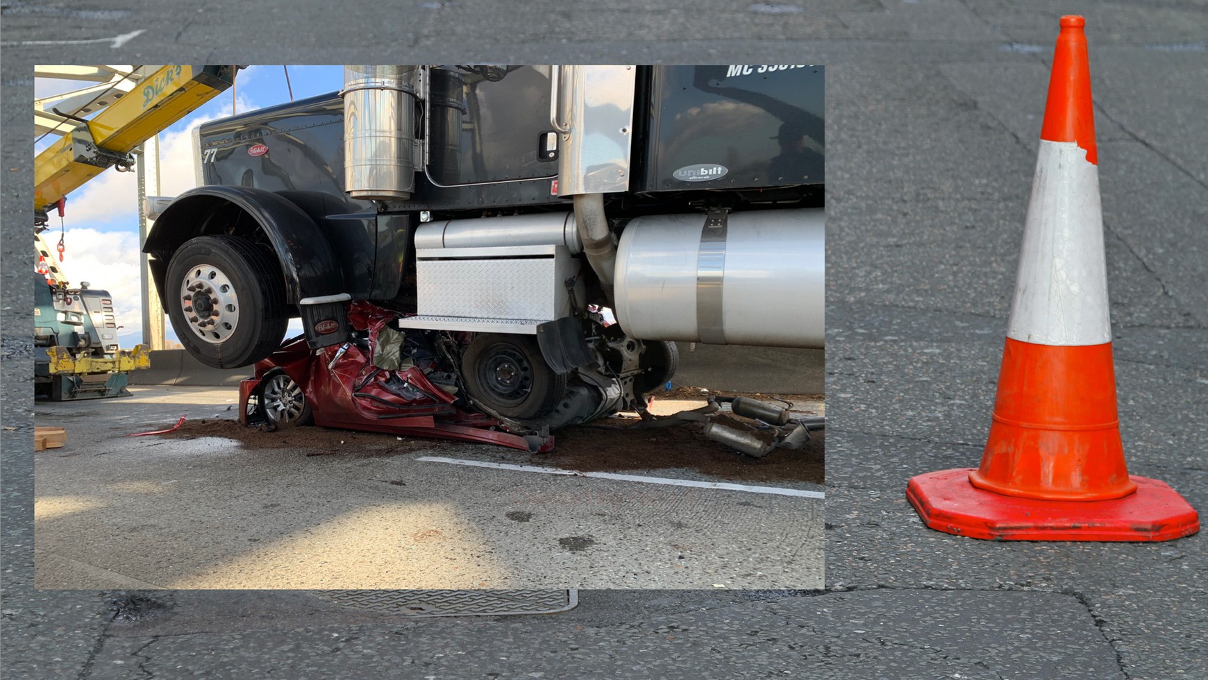 Do wnętrza Nissana udało się dotrzeć dopiero kiedy ciągnik siodłowy został zdjęty z wraku. Ku zdziwieniu wszystkich kobieta wyczołgała się z pojazdu o własnych siłach i ze wstępnych oględzin wynika, że ma tylko niewielkie obrażenia. Funkcjonariusz policji Rocky Oliphant z Waszyngtonu wykonał zdjęcia i przekazał informacje na Twitterze o poważnym wypadku. Ale potem, gdy ciągnik został podniesiony z samochodu i kobieta wyczołgała się z wraku o własnych siłach, stwierdził, że "to cud". Podobno kobieta skarżyła się jedynie na niewielki ból głowy i żeber.