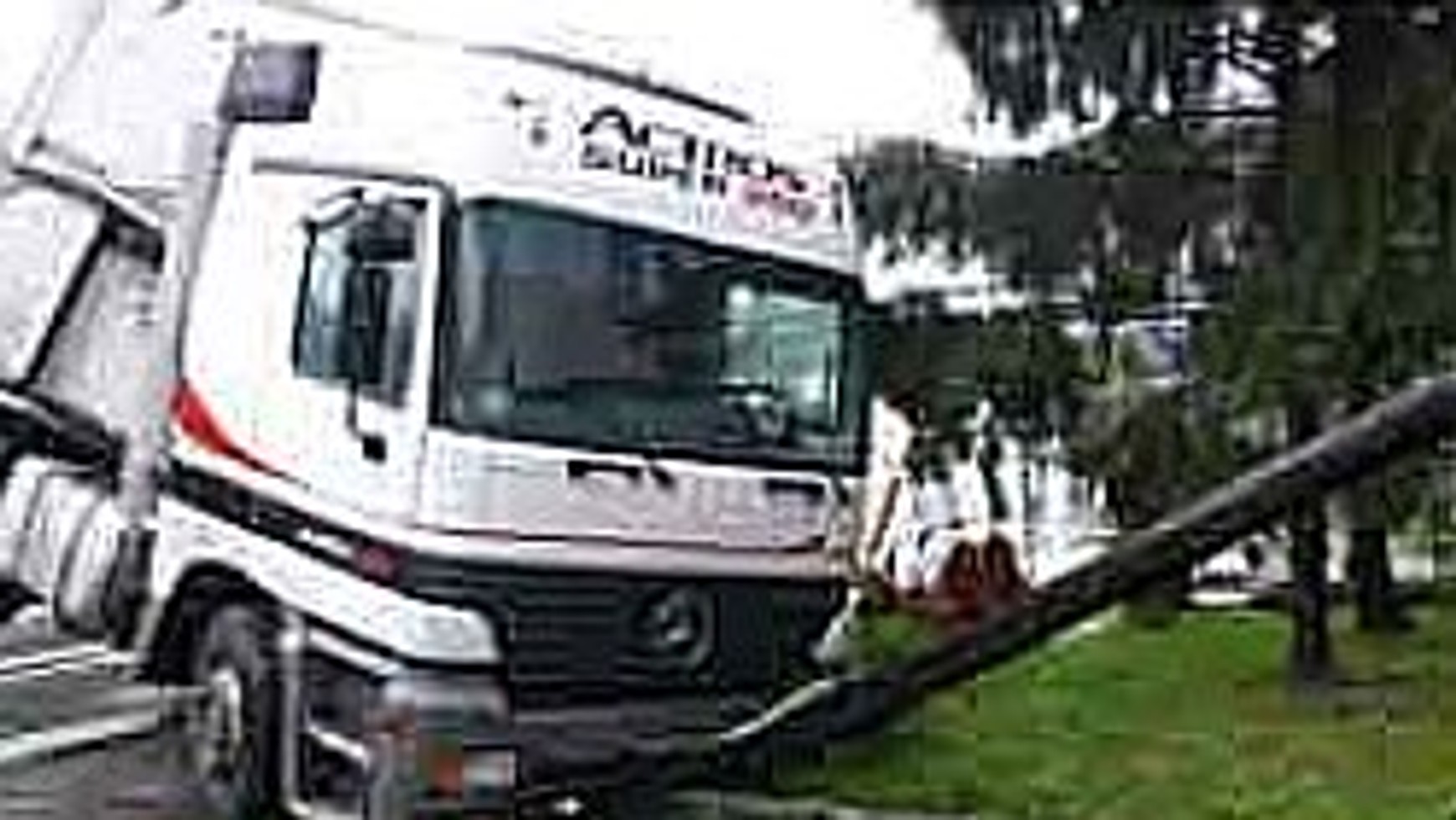 Po uszkodzeniu ogrodzenia TIR zatrzymał się dopiero na podjeździe do garażu. Przewrócona naczepa przez kilka godzin blokowała przejazd drogą.
