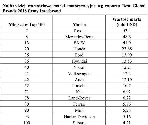 Już kolejny rok z rzędu Toyota należy do pierwszej dziesiątki najcenniejszych marek na świecie, sytuując się w gronie technologicznych potentatów obok Apple, Google, Amazona, Microsoftu czy Samsunga. Wartość marki największego producenta zelektryfikowanych samochodów przewyższa takie marki jak Facebook, Intel czy IBM. Dominującą pozycję Toyoty w branży motoryzacyjnej potwierdzają także inne rankingi wartości marek.