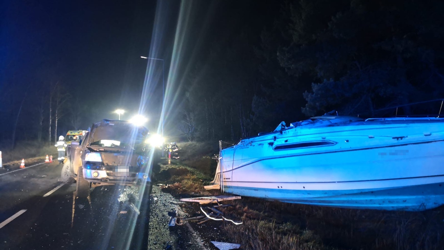 - Jeden z samochodów ciągnął lawetę z jachtem