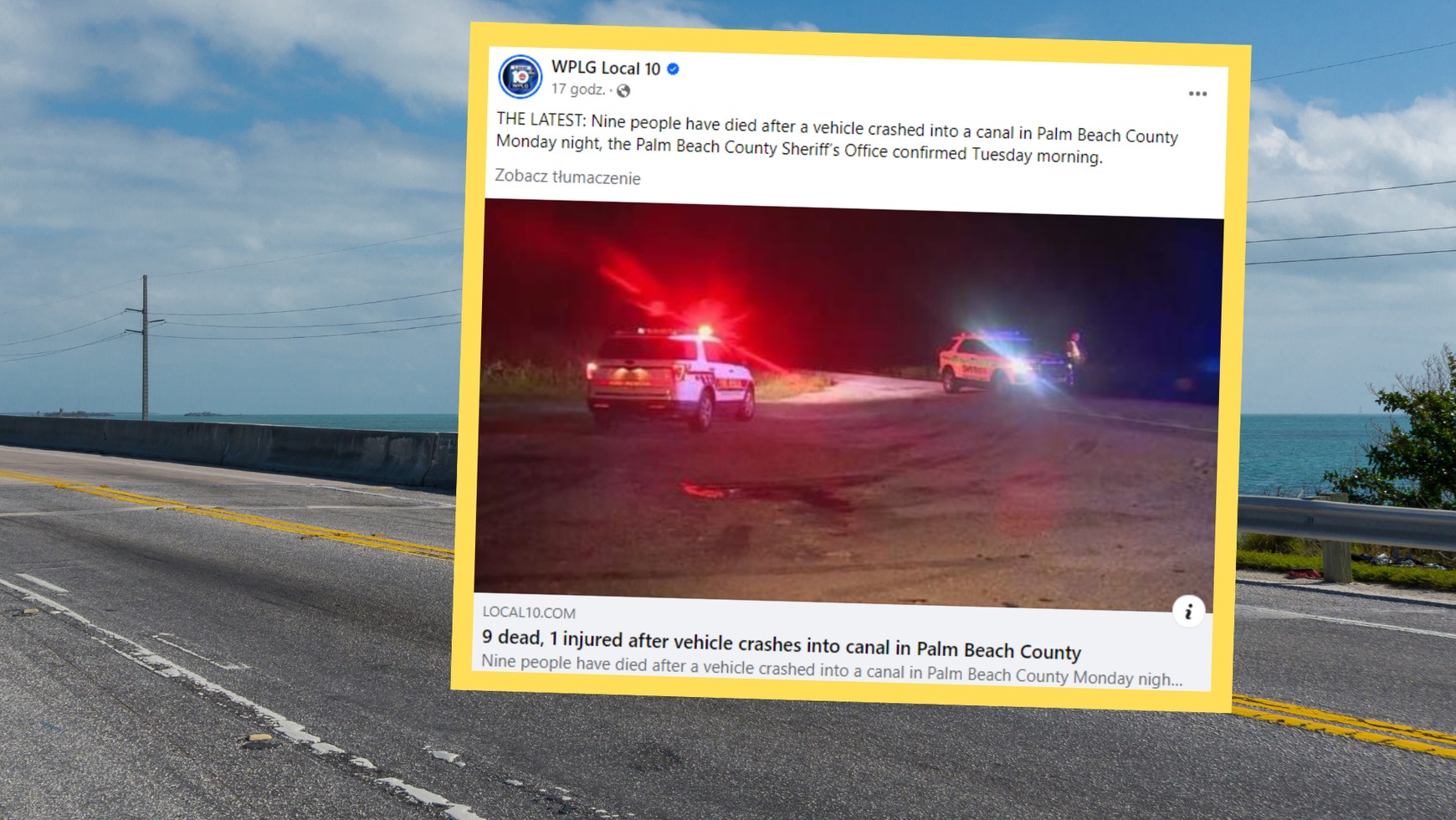 "Miasto robi wszystko, co w ludzkiej mocy, aby uczynić drogi bezpieczniejszymi, w tym instalując więcej oświetlenia i poręczy, ale zawsze możemy zrobić więcej" — przekazał burmistrz Belle Glade, Steve Wilson, dodając przy tym, że modli się za rodziny ofiar.