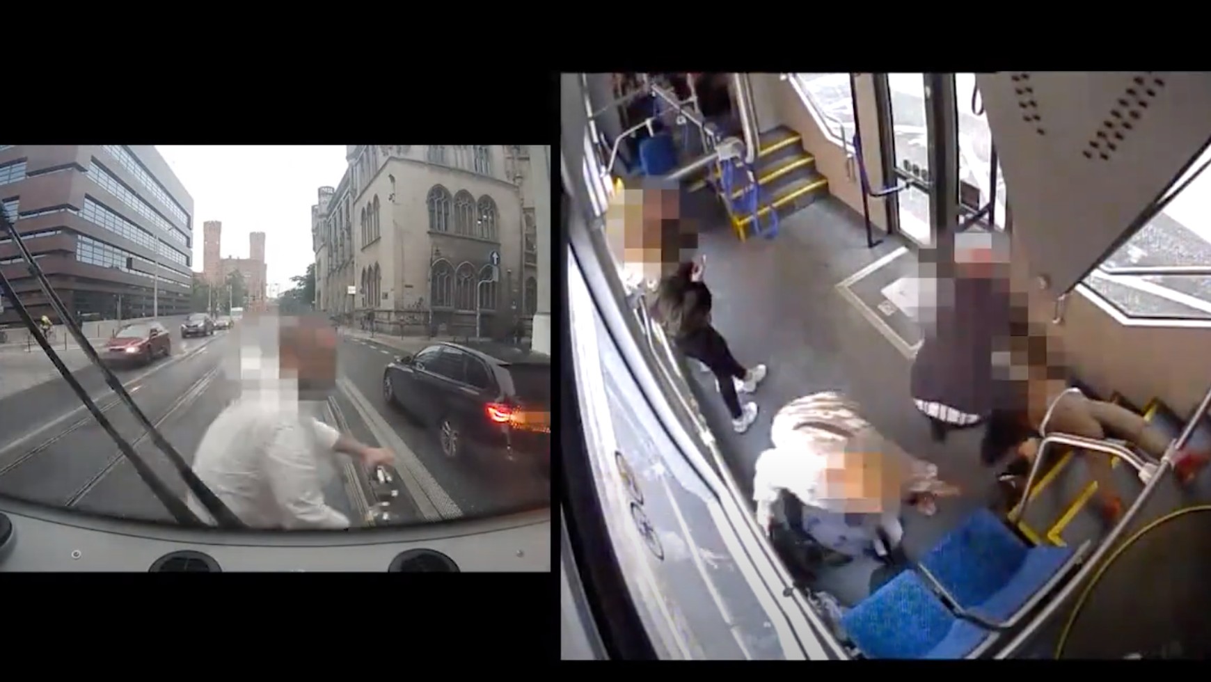 Co się dzieje z pasażerami tramwaju podczas awaryjnego hamowania pokazał wrocławski MPK. Opublikowany film pokazuje niebezpieczne sytuacje z tramwajami i pieszymi w roli głównej. Nagranie ma być przestrogą głównie dla pieszych, którym wydaje się że zdążą przebiec lub przejechać tuż przed jadącym tramwajem.