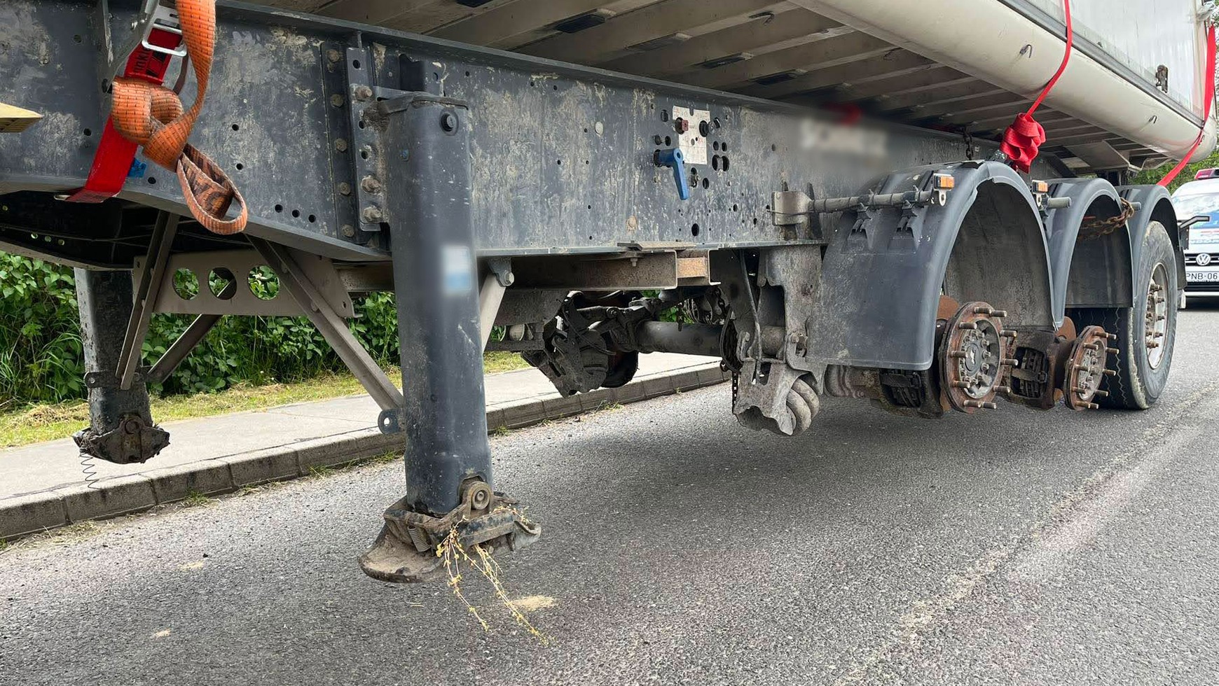 Po zatrzymaniu okazało się, że duża naczepa była przygotowana do podróży, jak tylko się da. Dwie osie miała prowizorycznie podwieszone na łańcuchach i pasach, więc w efekcie stała jedynie na dwóch kołach ostatniej osi.