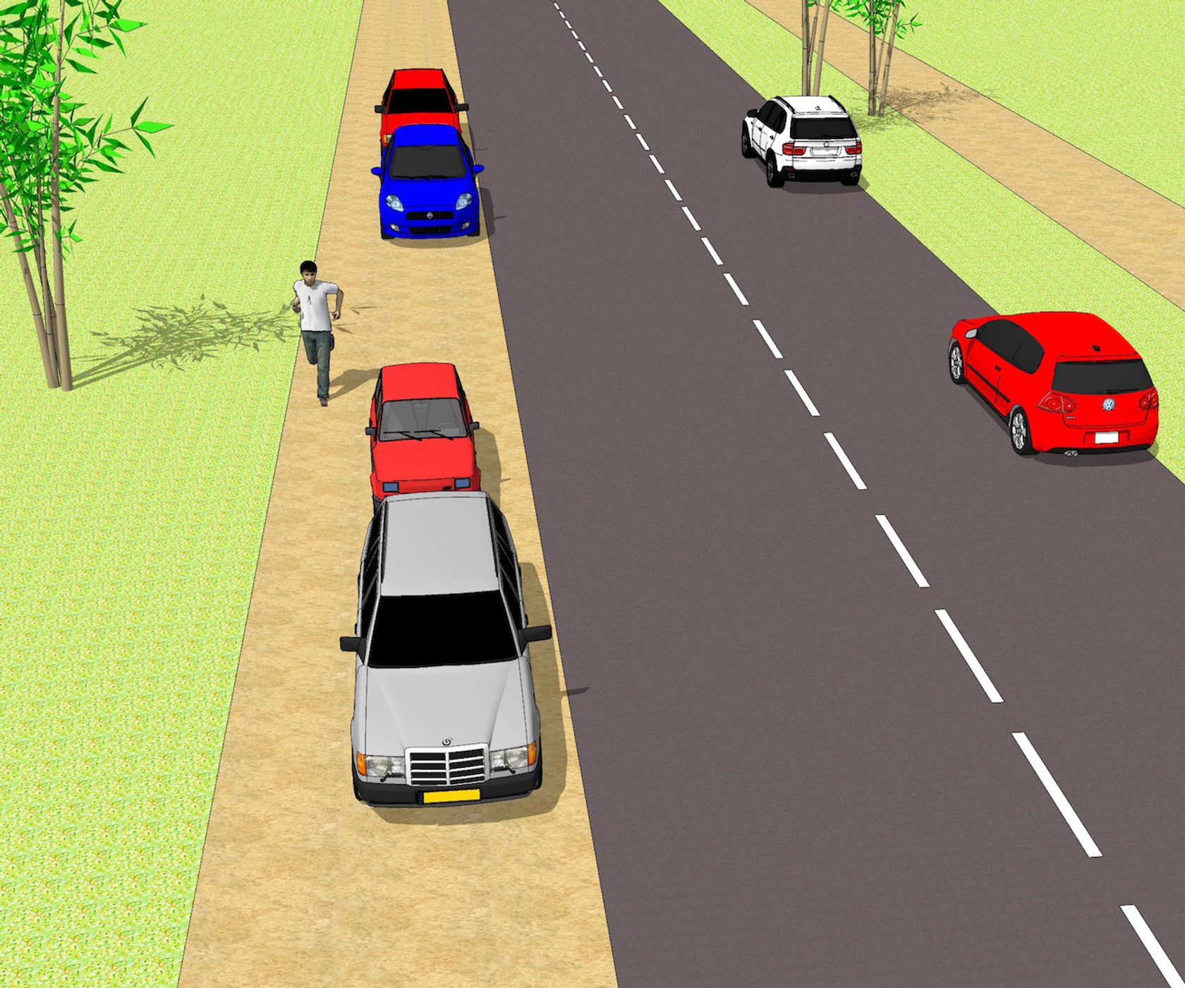 Jeśli dmc naszego samochodu jest wyższe niż 2,5t, co zdarza się nie tylko w przypadku minibusów i vanów, lecz także w przypadku wielu SUV-ów i większych aut, zwłaszcza z napędem hybrydowym i elektrycznym, na drogę dla pieszych (do niedawna w przepisach nazywaną chodnikiem), nie wolno wjechać nim nawet jednym kołem. "Dopuszcza się zatrzymanie lub postój na drodze dla pieszych kołami jednego boku lub przedniej osi pojazdu samochodowego o dopuszczalnej masie całkowitej nieprzekraczającej 2,5 t, pod warunkiem że: 1) na danym odcinku jezdni nie obowiązuje zakaz zatrzymania lub postoju; szerokość chodnika jest nie mniejsza niż 1,5 m i nie utrudni ruchu pieszych; 3) pojazd umieszczony przednią osią na drodze dla pieszych nie tamuje ruchu pojazdów na jezdni". I dalej: "Dopuszcza się, przy zachowaniu warunków określonych w ust. 1 pkt 1 i 2, zatrzymanie lub postój na drodze dla pieszych przy krawędzi jezdni całego samochodu osobowego, motocykla, motoroweru lub wózka rowerowego. Inny pojazd o dopuszczalnej masie całkowitej nieprzekraczającej 2,5 t może być w całości umieszczony na drodze dla pieszych tylko w miejscu wyznaczonym odpowiednimi znakami drogowymi.. Następne pytaniePytanie 3/10