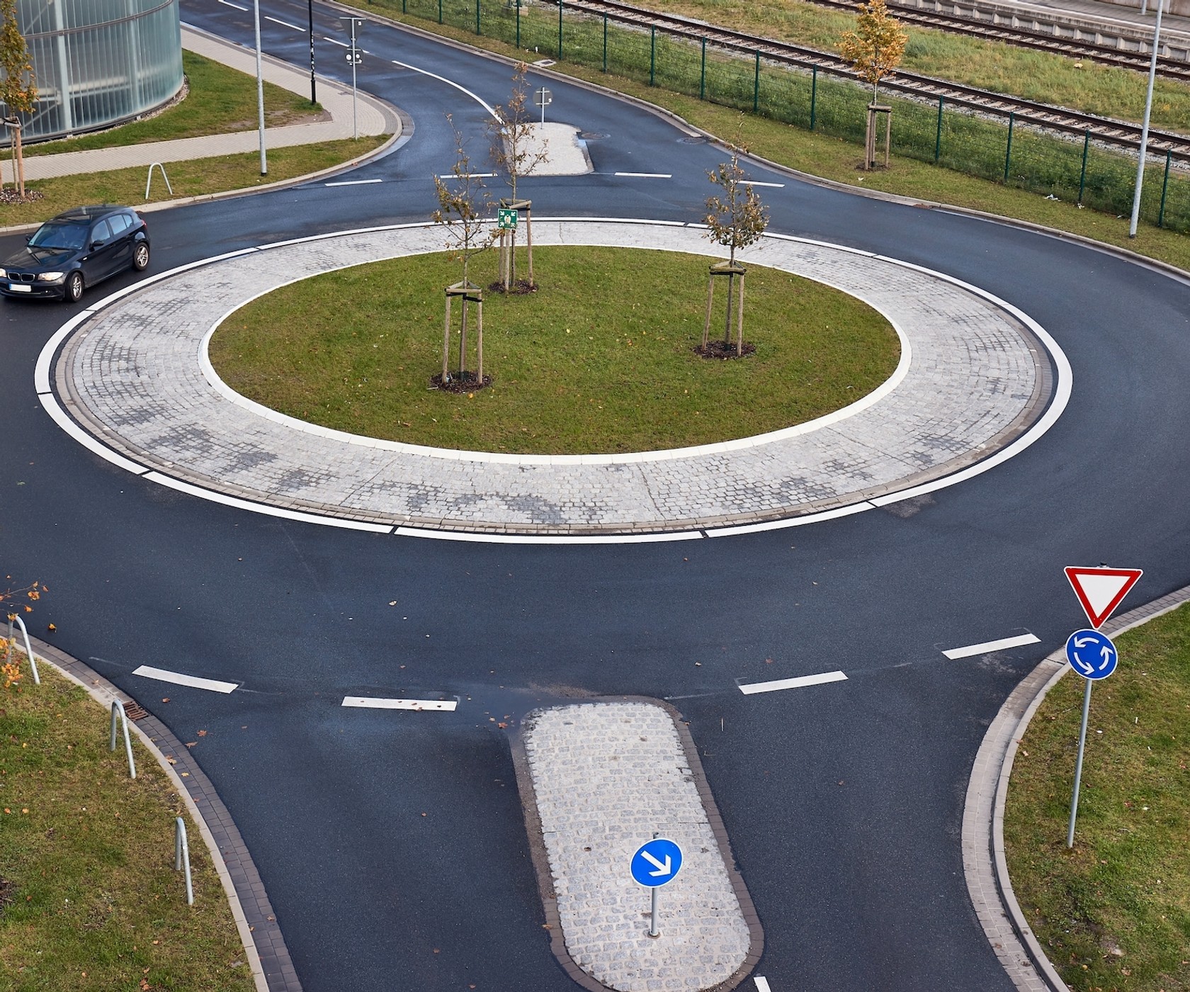 Czy tramwaj na rondzie widocznym na obrazku ma pierwszeństwo przed innymi pojazdami?
