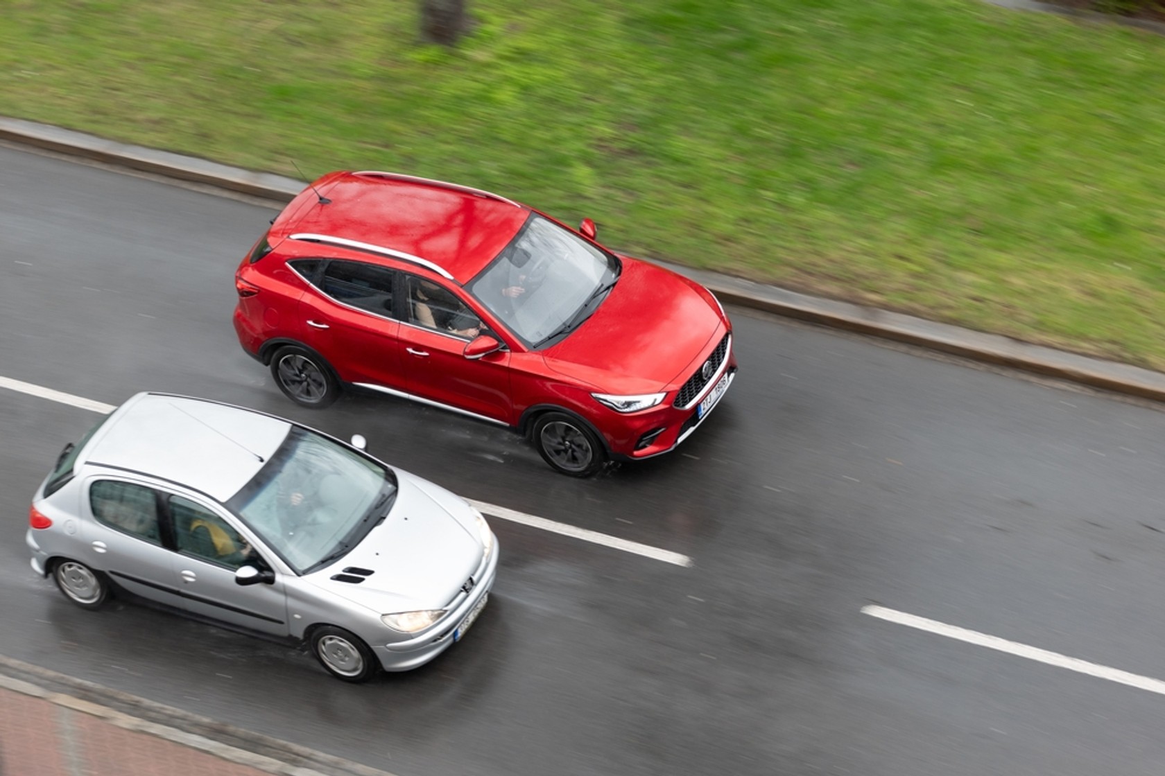 13. Jedziesz na autostradzie lewym pasem i doganiasz auto jadące przed tobą. Co robisz?