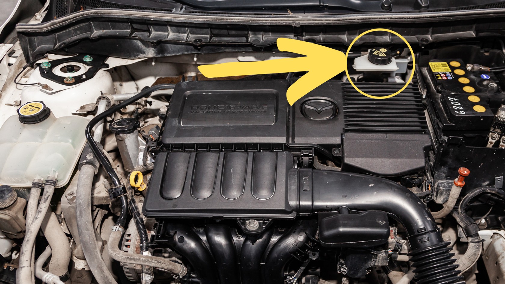 Na zdjęciu widoczny jest zbiornik na płyn do spryskiwaczy. O dolaniu go trzeba pamiętać szczególnie zimą, gdy warunki pogodowe mogą utrudniać widoczność na drogach. NASTĘPNE PYTANIEPytanie 4/10