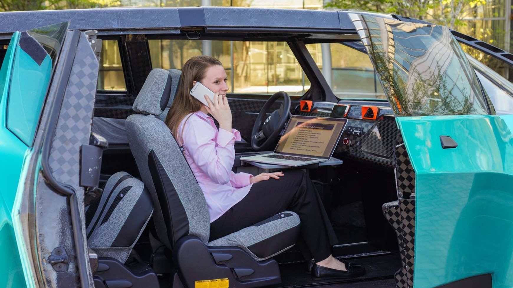 Samochód otrzymał śmiały, młodzieżowy design, który ma zwrócić uwagę chcących się wyróżniać młodych ludzi. Wszechstronne wnętrze można błyskawicznie dostosować do potrzeb chwili – ułatwia to niska podłoga oraz fotele zamocowane na szynach, które można łatwo składać, przesuwać i wyjmować. Pod maskę trafił silnik elektryczny, który nie tylko oszczędza środowisko, ale zapewnia cichą, płynną jazdę i pełny moment obrotowy od chwili ruszenia. We wnętrzu i bagażniku zamontowano standardowe wtyczki 110 volt, do których można podłączyć każde urządzenie. Nie ma więc problemu, żeby wyposażyć auto w najważniejsze atrybuty każdego biura – laptop i ekspres do kawy.