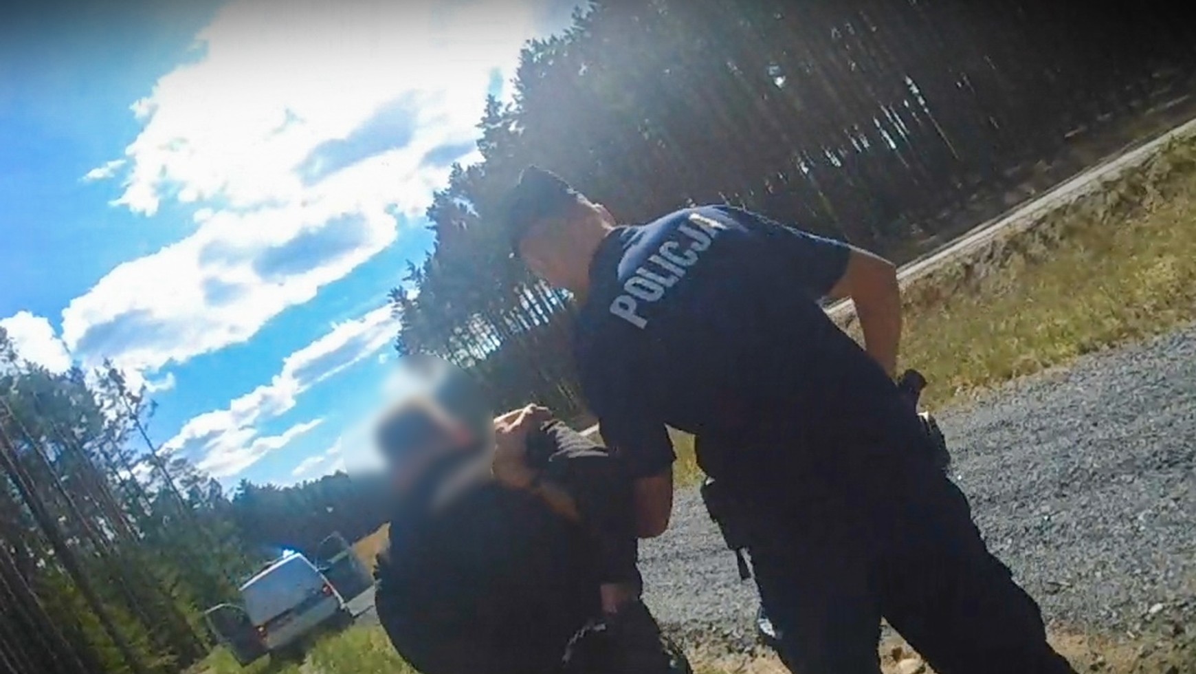 Motocyklista nie reagował na sygnały świetlne i dźwiękowe. Usiłował zgubić pogoń, zjeżdżając do lasu na gruntową drogę, gdzie stracił panowanie nad pojazdem i ponownie się przewrócił. Pieszą ucieczkę udaremniono po kilkudziesięciu metrach.