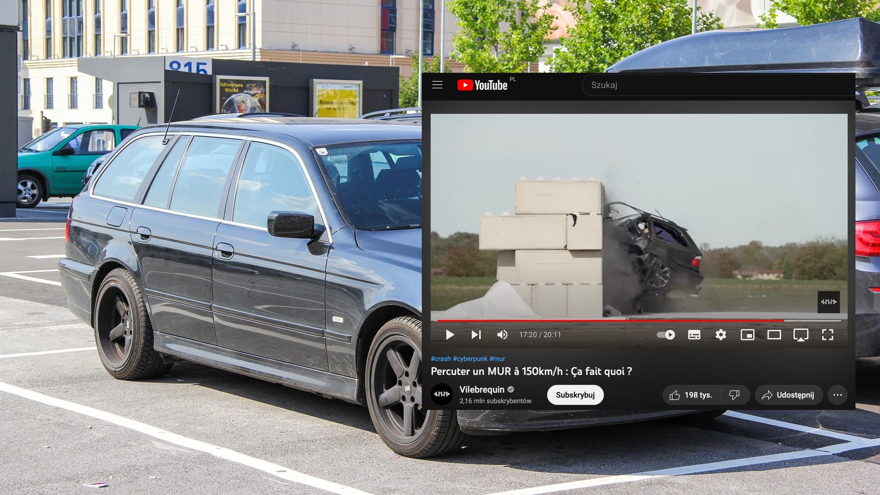 Francuzi, prowadzący w serwisie YouTube kanał Vilebrequin, poszli znacznie dalej i postanowili sprawdzić, co stanie się z samochodem, gdy ten uderzy w betonową ścianę, jadąc z prędkością 150 km na godz. Problemem było już znalezienie odpowiedniego miejsca do przeprowadzenia testu. Dopiero wynajęcie pasa startowego umożliwiło przeprowadzenie tej nietypowej akcji.