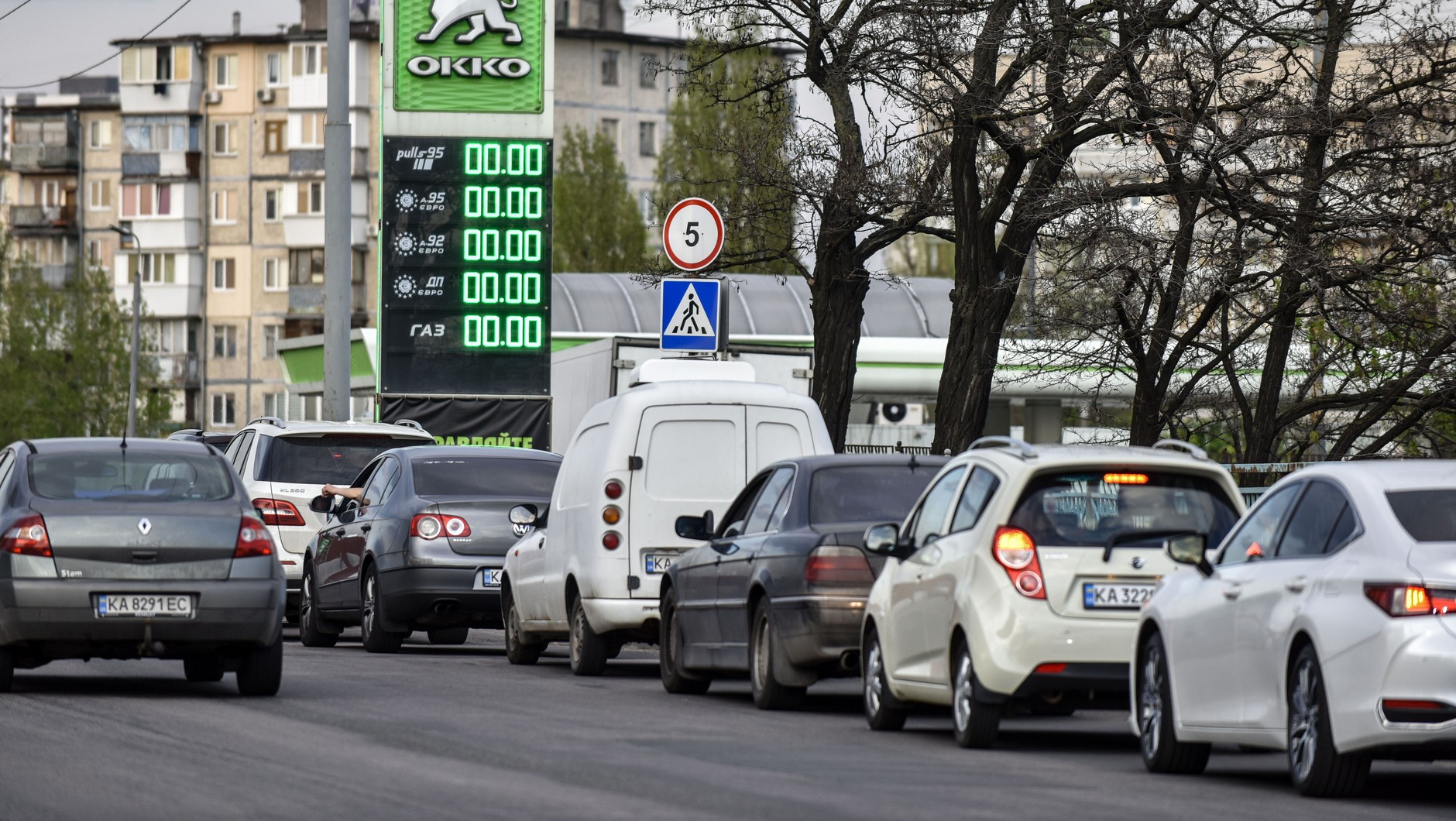 Do stacji benzynowych w Kijowie ustawiają się obecnie długie kolejki, a na niektórych z nich wprowadzono limity tankowania. Na stacjach, gdzie takie ograniczenia wprowadzono, kierowcy samochodów osobowych mogą zatankować od 10 do 50 litrów paliwa. Czas oczekiwania w kolejce wynosi około godziny.