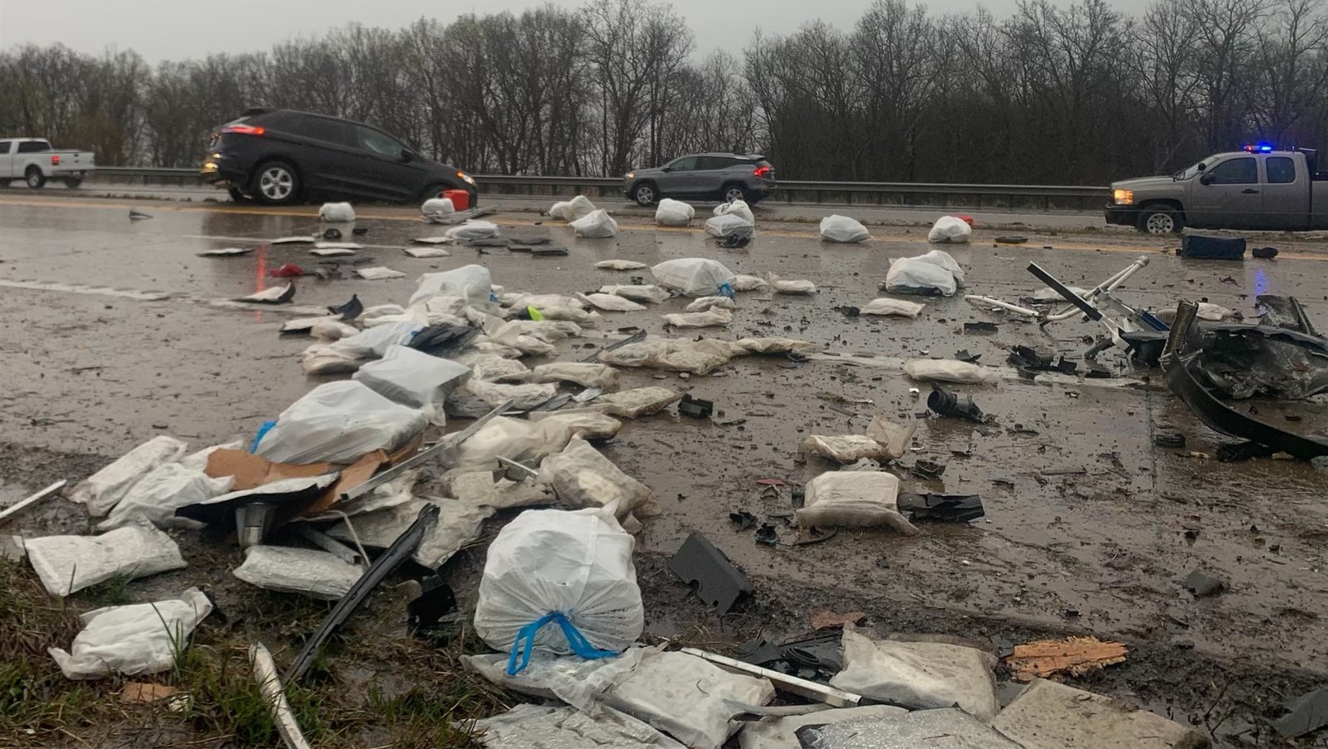 Jak się później okazało, paczki rozsypane na drodze były wypełnione marihuaną. Zgodnie z informacjami podanymi przez policję z Missouri, na autostradzie znalazło się ponad 226 kg narkotyków.
