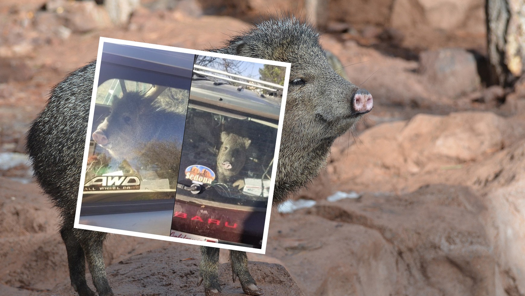 Pekari, wchodząc do środka, zatrzasnęło klapę. Jej "ofiarą" padła paczka chrupek. Zwierzę, nie mogąc się wydostać, spanikowało i zdemolowało deskę rozdzielczą, drzwi pasażera oraz przełączyło wybierak skrzyni biegów w pozycję N. "Uwolnione" Subaru najzwyczajniej w świecie stoczyło się z podjazdu, na którym stało, przejechało przez ulicę, aż zatrzymało się pod rosnącymi nieopodal drzewami. Szeryf z Yavapai, który odnalazł zgubę, uwolnił pekari i pozwolił mu uciec. Cała sprawa zakończyła się więc pomyślnie — ucierpiało tylko wnętrze Subaru.