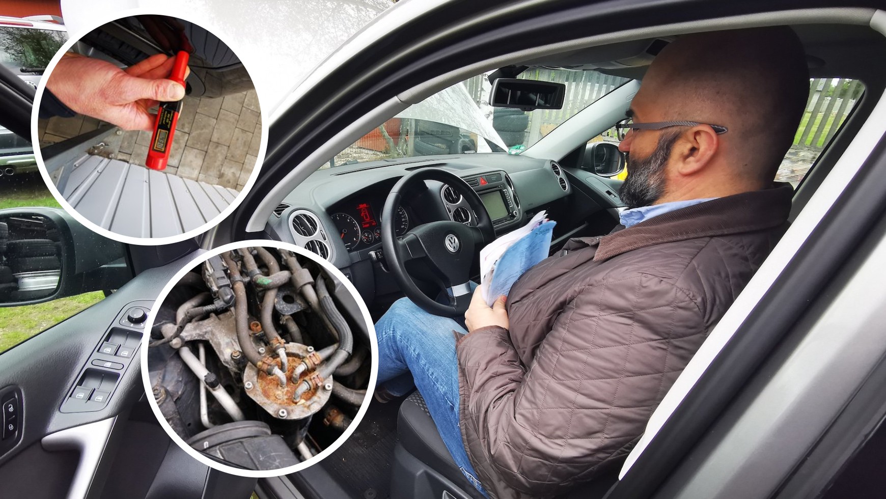 Nie ma co ukrywać: po odkryciu zwoleńskiego zagłębia samochodów porozbijanych, z cofanymi licznikami, a przede wszystkim w dość nieprawdopodobny sposób przygotowywanych do sprzedaży, tym razem zdecydowaliśmy się na eksplorację komisów w Kielcach. I przyznajmy, od początku liczyliśmy, że będą ofiary. Kandydat był dość podejrzany: bezwypadkowy Tiguan sprowadzony z Niemiec (już samo to jest podejrzane – bo auta używane są w Niemczech zwykle droższe niż w Polsce, więc te, które do nas trafiają, z reguły mają jakieś wady). Do tego z umiarkowanym przebiegiem. 212 tys. km to – jak na auto z 2009 r. a więc prawie 14-letnie – mało. Niemiec kupił sobie nietanie auto z silnikiem Diesla, aby przejeżdżać nim kilkanaście tys. km rocznie? Wątpliwe.