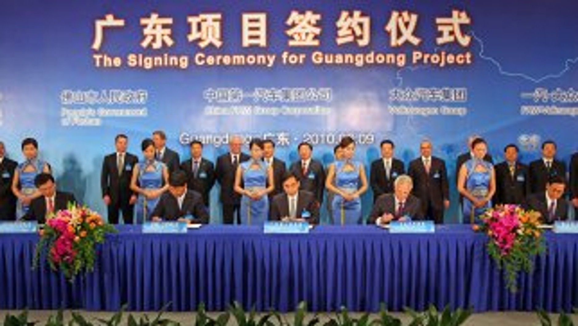 Przedstawiciele koncernu Volkswagen podpisali ze swoim chińskim partnerem firmą FAW porozumienie w sprawie budowy nowej fabryki samochodów osobowych w Foshan.